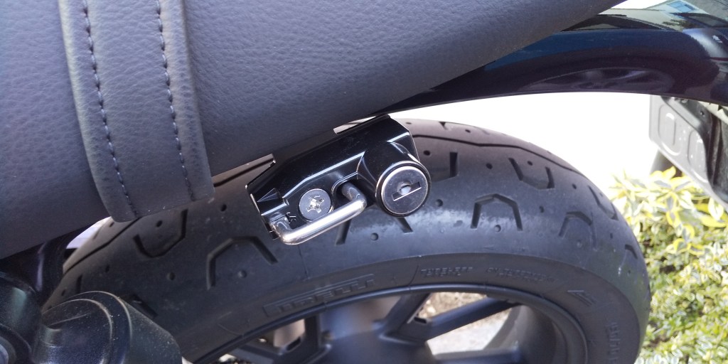 全部で20分くらいだったでしょうか。Street Twinにとても簡単に装着できました。ツーリングに行って休憩で缶コーヒーを飲んだりするときは、ヘルメットロックにヘルメットを預けることができるようになりました。