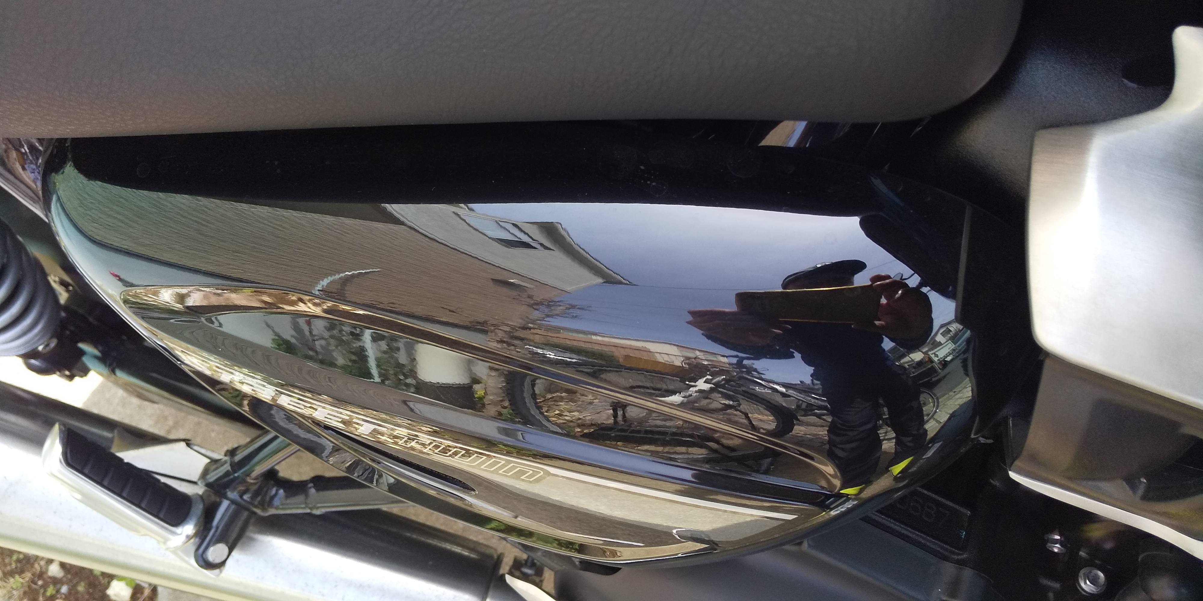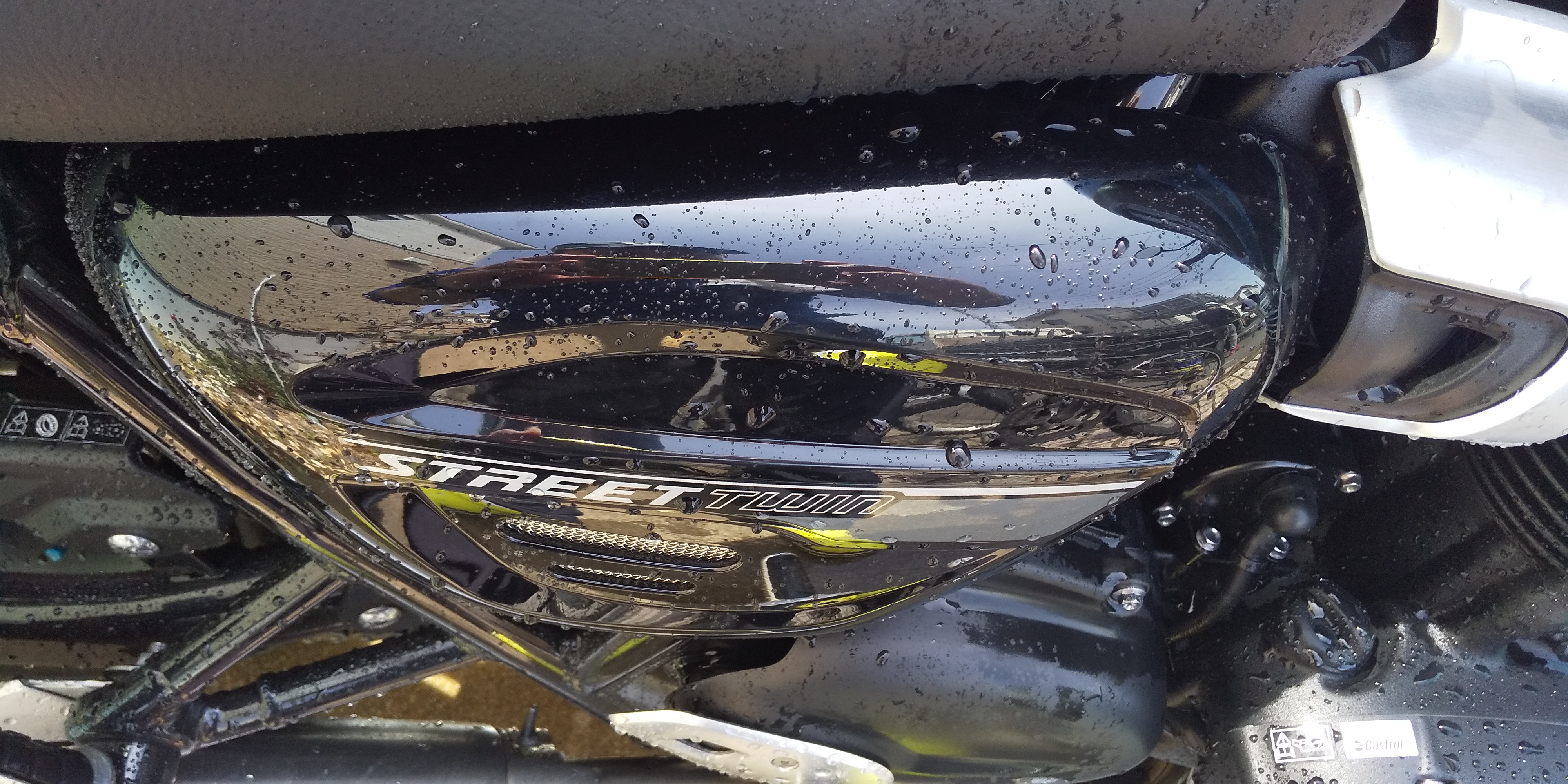 Street Twinが納車されてから約4ヵ月経とうとしており、約1,700㎞乗ったこともあり、それなりに汚れてきました。そこで、はじめてStreet Twinを洗車しました。上記の画像では少し見えにくいかもしれませんが、ほこりが目立つようになってきました。いちばん目立つのはフェンダーやラジエーターガードなどの黒い部分です。