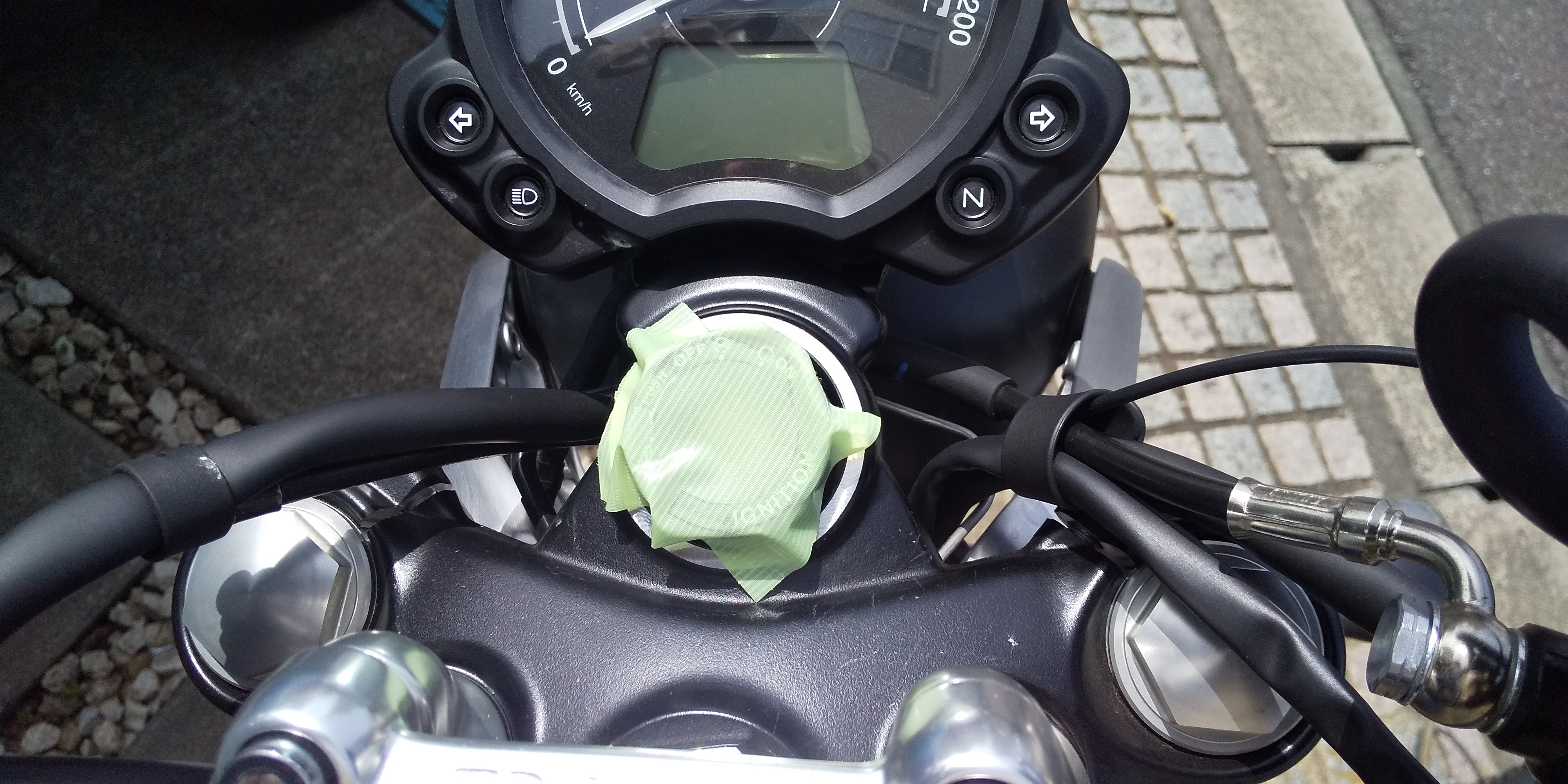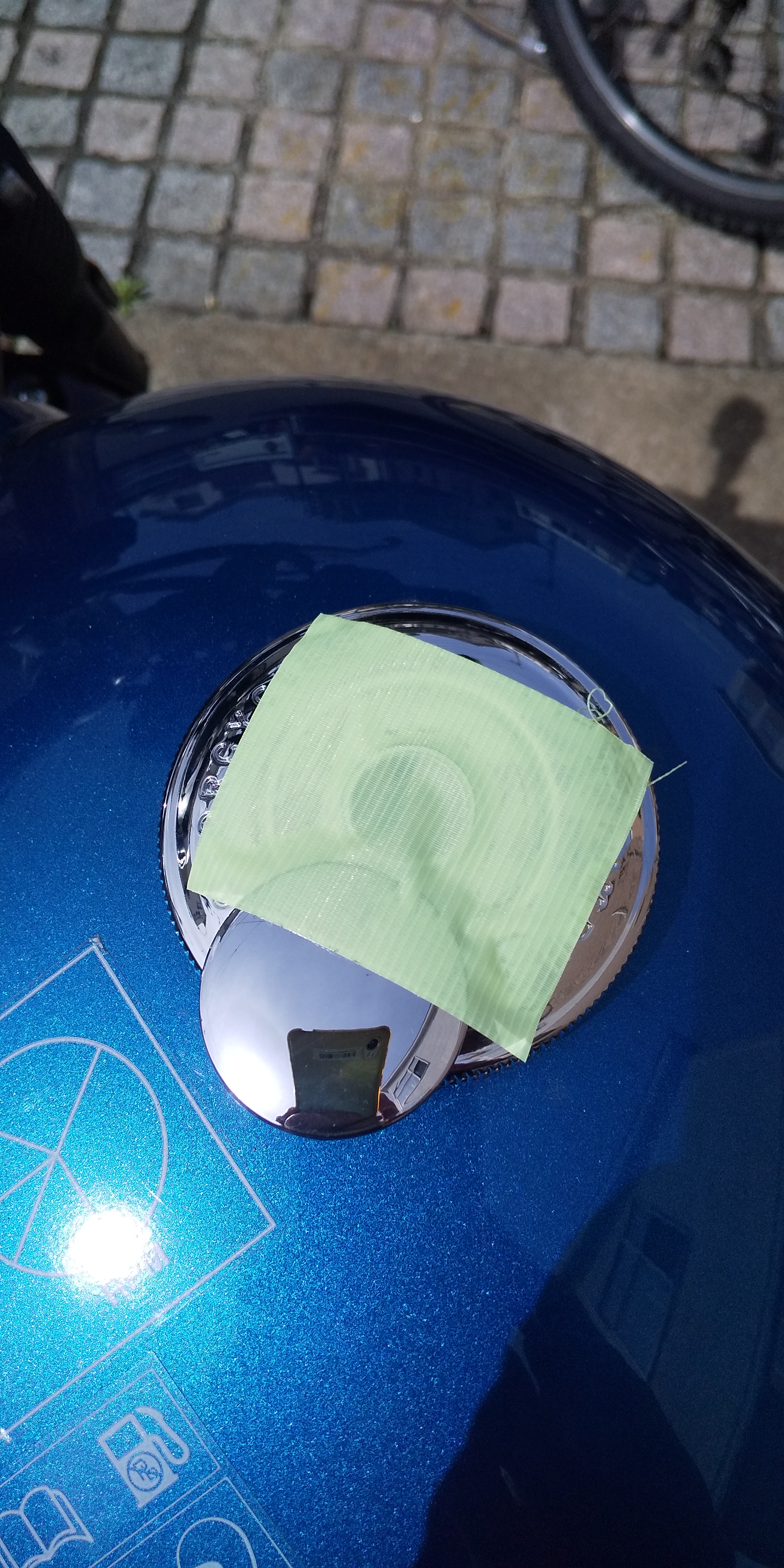 最初にStreet Twinのメインキーやタンクキャップの穴を養生しました。ゆっくりとStreet Twinに水をかけながら、手でやさしくなでながら汚れを落とします。上の画像は水洗いをした後です。