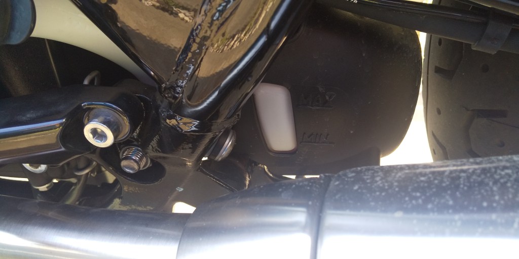 Street Twinは私にとって初めての水冷エンジンのバイクだったので、最初はリザーブタンクがどこにあるか分かりませんでした…。取扱説明書を見てやっとわかりました。