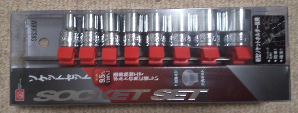 インターネットで調べたところ、同じ悩みを持っていた方がスピンナーハンドルを買って見事にナットを外すことに成功していました。そこで早速Amazonで検索し、SK-11のロングスピンナーハンドルとソケットセットを購入しました。全部で3,000円弱でした。