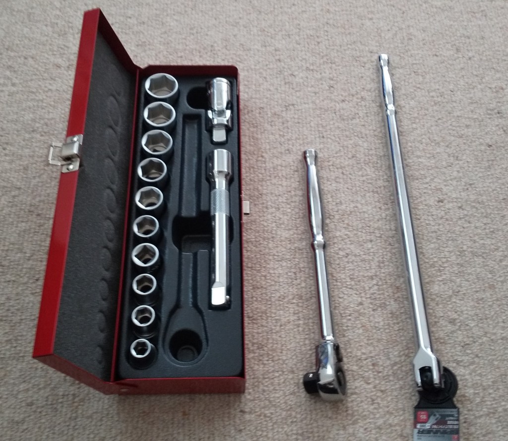 手持ちのソケットレンチと比較すると380㎜のスピンナーハンドルが少し長いです。この長さがStreet Twinの固いボルトを緩めてくれることを願います。