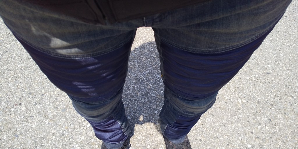 ワークマンはテレビでも取り上げられているように、バイク用のウェアやグローブが販売されています。そこで近所のワークマンで購入したのが画像の2点です。ライディングパンツは税込みで3,900円、速乾性のインナーは1,300円くらいだったと思います。