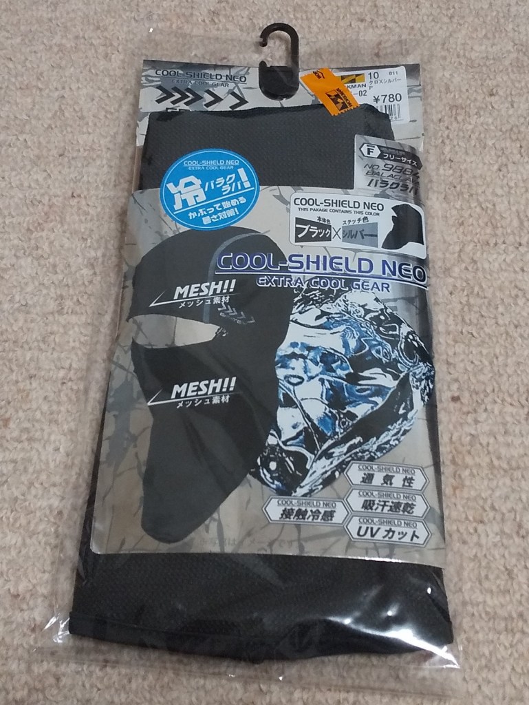 これまで使用していたインナーもワークマン製ですが、今回購入したものもワークマン製で780円です。生地はメッシュになっています。早速インナーを被ってからフルフェイスヘルメットを被ってみました。なかなか快適そうです。