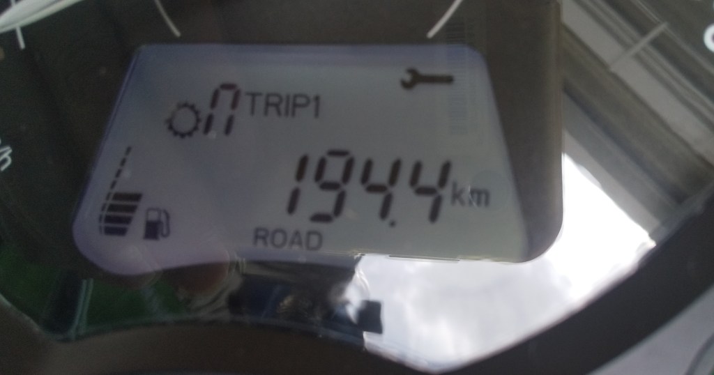 3回目の給油は2日目のツーリング後です。2日目は215.0㎞走り、7.29ℓを給油しました。燃費は29.5㎞/ℓでした。前半が一般道、後半は高速道路が主体でした。もうちょっと燃費が伸びるかと思いましたが、30.0㎞/ℓには届きませんでした。やはり2速や3速の区間がそれなりに長かったのかと思います。