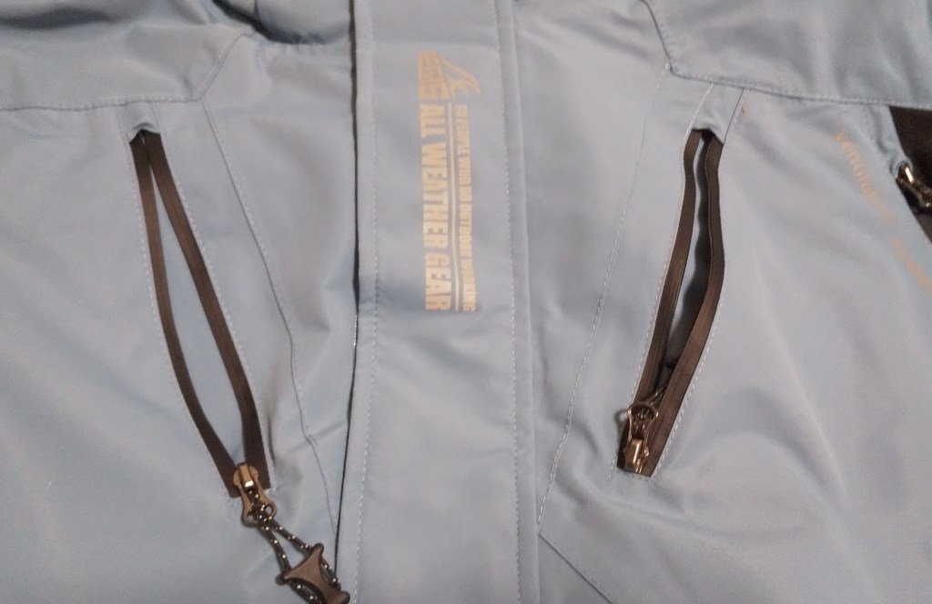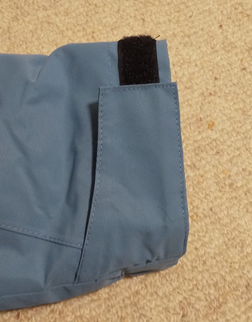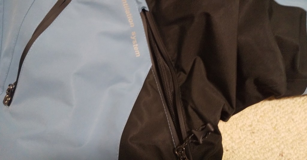 税込み4,900円と安価ですが、いろいろな工夫がされています。胸元のチャックはポケットになっています。脇の下のチャックを開けるとベンチレーションになります。袖口、腰、裾のマジックテープや紐を絞ると風が入らないように調整することができます。生地も丈夫そうです。重量も軽いので、着ていて楽そうです。