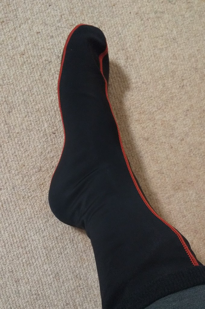 そこで足元を暖かくしようとワークマンで見つけたのがSkill Soxです。価格は税込みで1,000円弱でした。触った感じは表も裏もさらさらしています。靴下の上に履く靴下です。「オーバー靴下」とでもいうのでしょうか。保温機能があるようです。