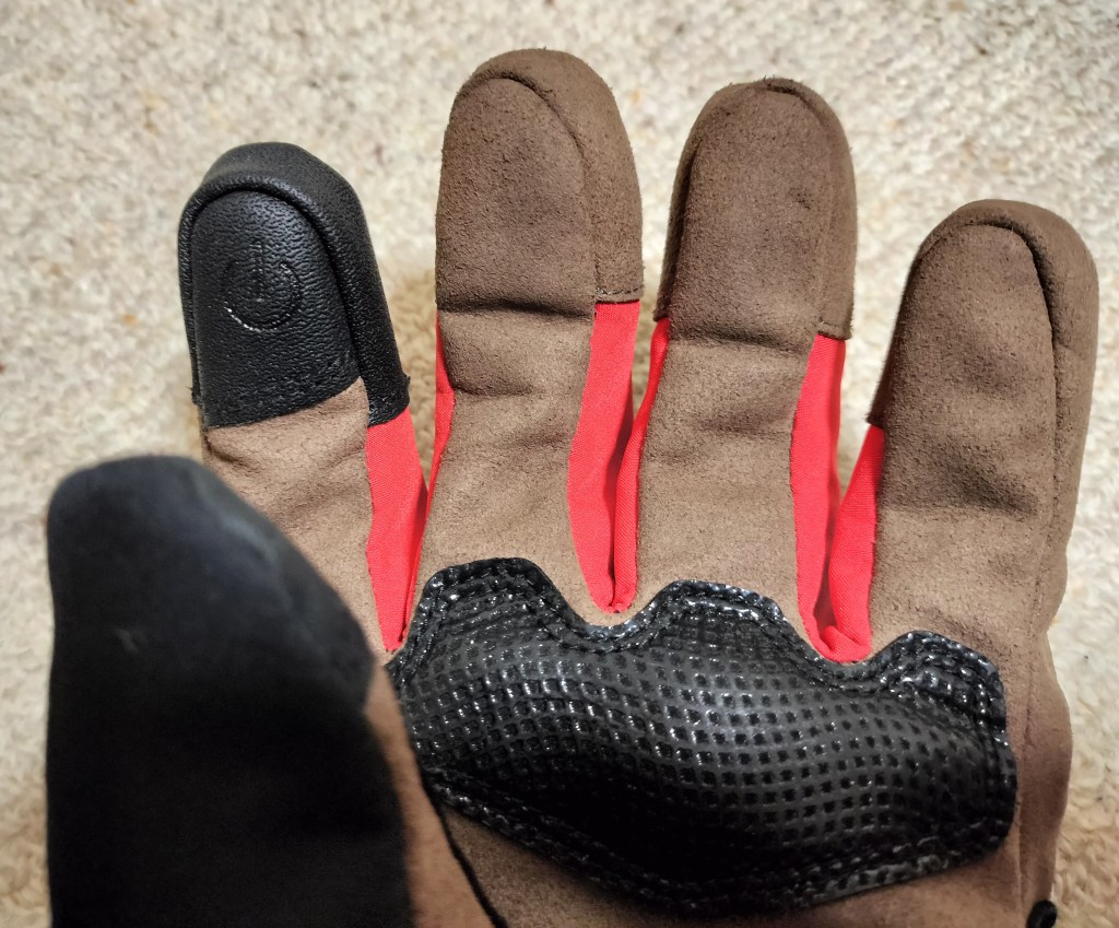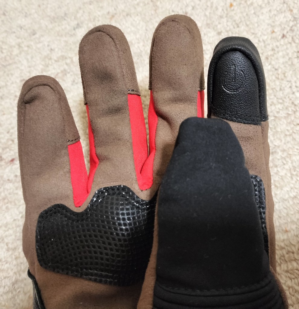 指先は加工がしてあって、スマホが操作できるようになっています。細かい作業の場合はグローブを外して操作しますが、ちょこっと操作したいときは役に立ちます。