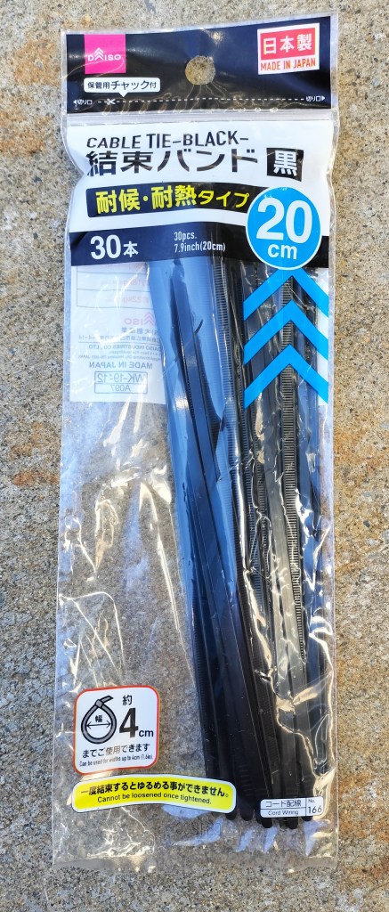 結束バンドは100円で30本買うことができました。あと28本あります。さて、なにに使おうか…。