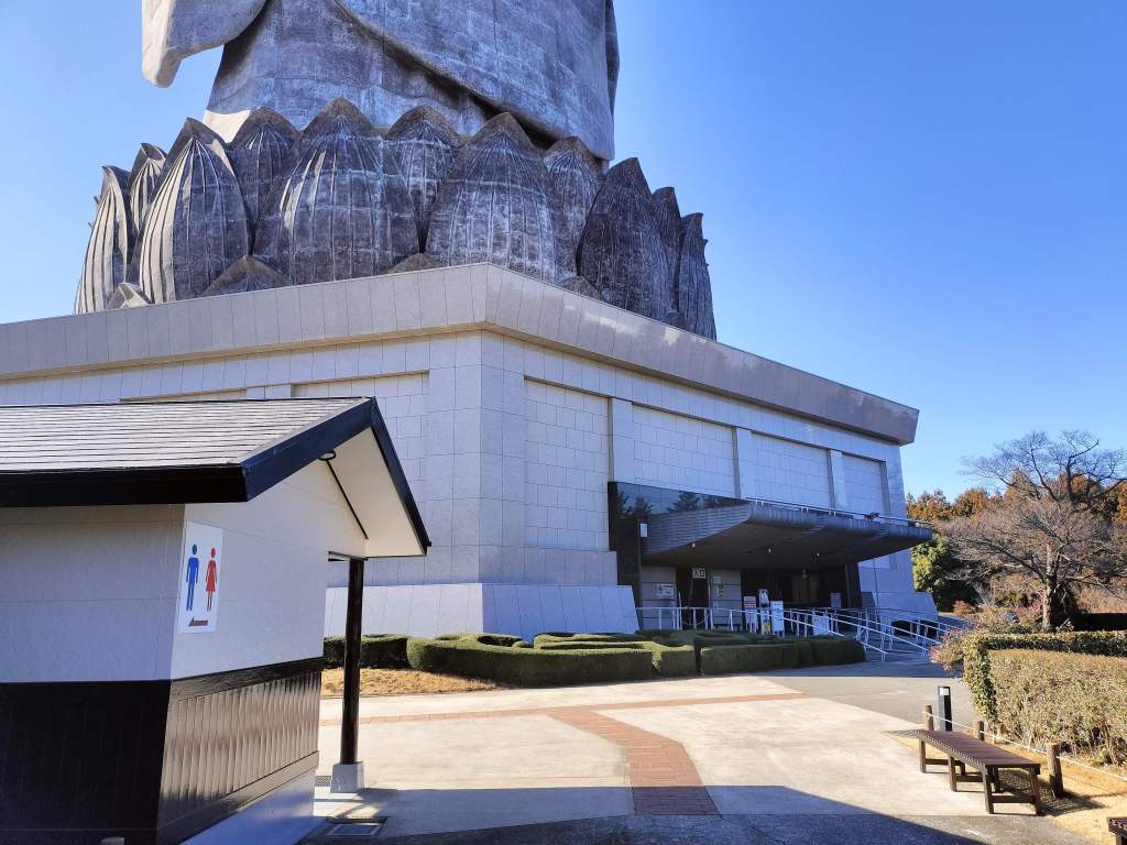 拝観料500円で庭園に入ることができ、拝観料800円で大仏様の胸元85mのところまでエレベーターで行くことができます。庭園に入り大仏様へ歩きますが、改めて大きさに驚きます。エレベーター入口は大仏様の背中側にあります。