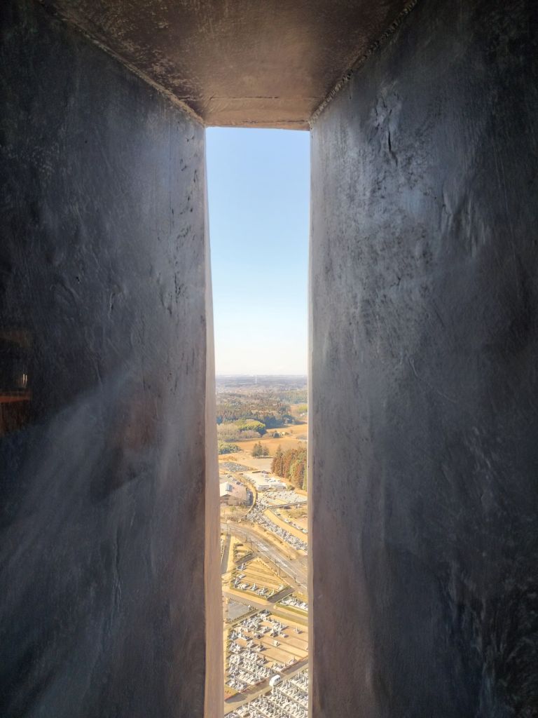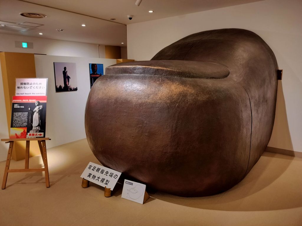 大仏様の中には靴を脱いで入ります。入って順路を進むとエレベーターに案内され、大仏様の胸元へ行くことができます。途中には大仏様の実物大の足の指があります。大きい…。胸元には小窓が複数あります。本当は富士山が見えるらしいのですが、この日がガスが濃いのか見ることができませんでした。