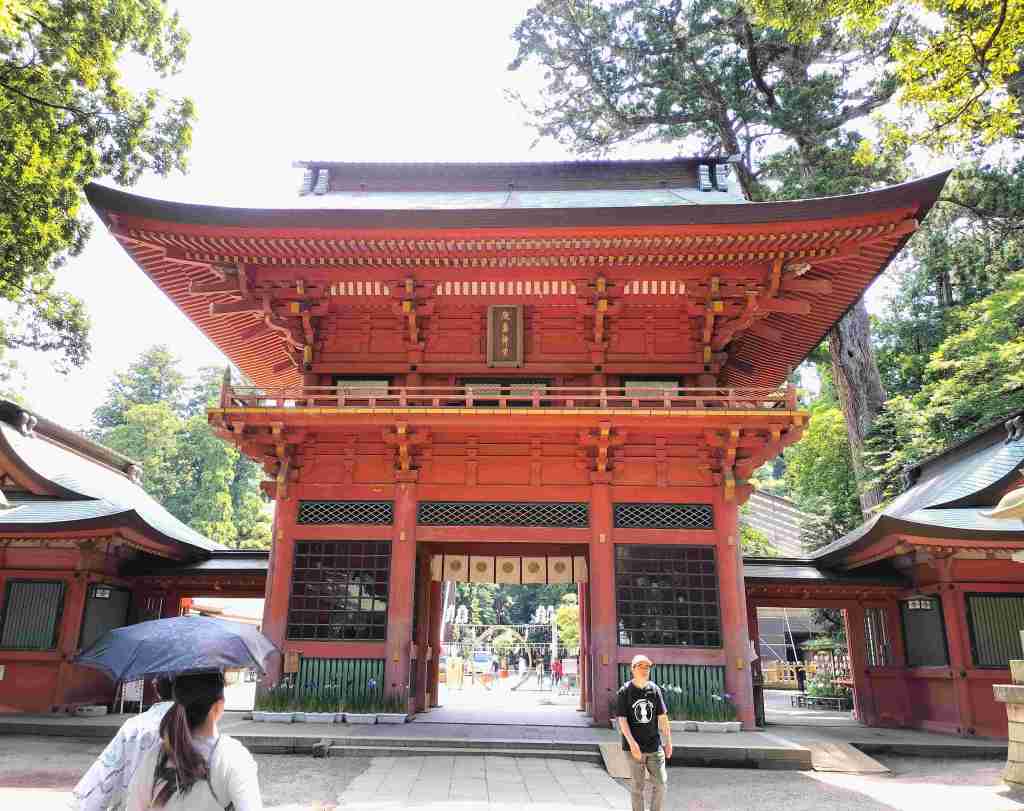 最初の画像にあった鳥居をくぐり、歩み進むと楼門に着きます。この楼門をくぐって先に進みます。ここまでは、緑の中を歩くのでとても気持ちいいです。