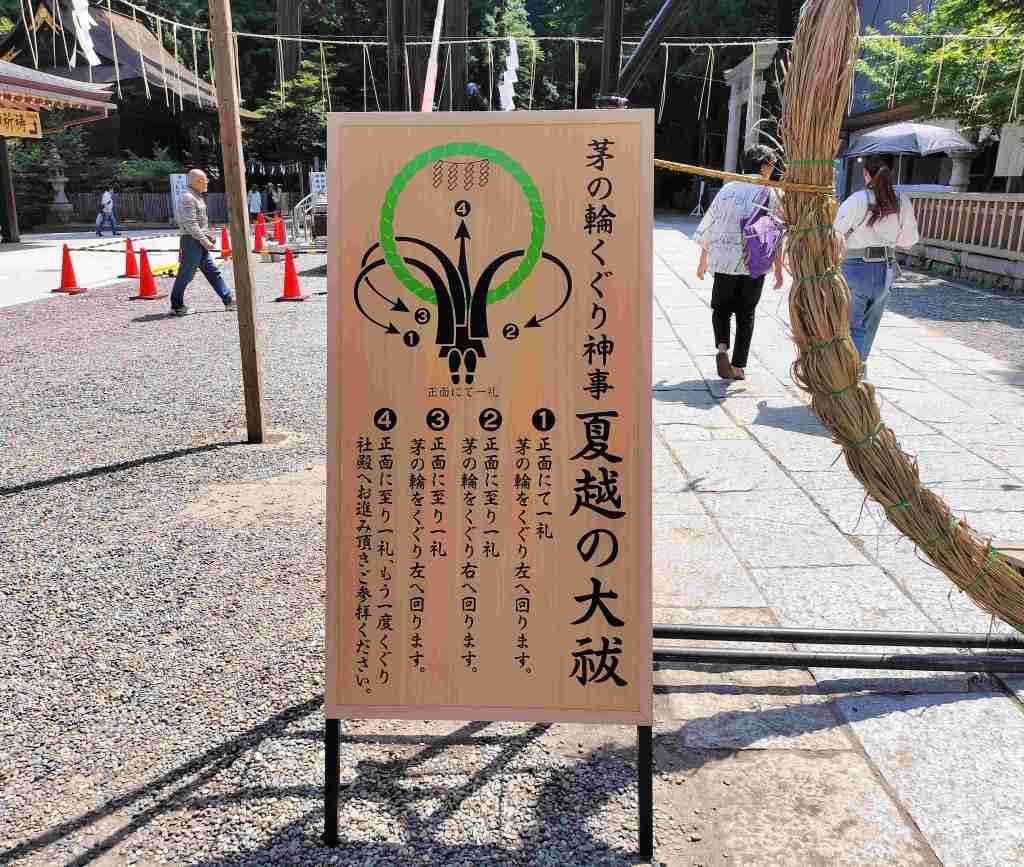 先へ行くと、芽の輪が設置されています。芽の輪をくぐり、紙の人形に罪けがれをうつし、清浄な心と身体になって幸福な半年を過ごすことができるように祈るもののようです。