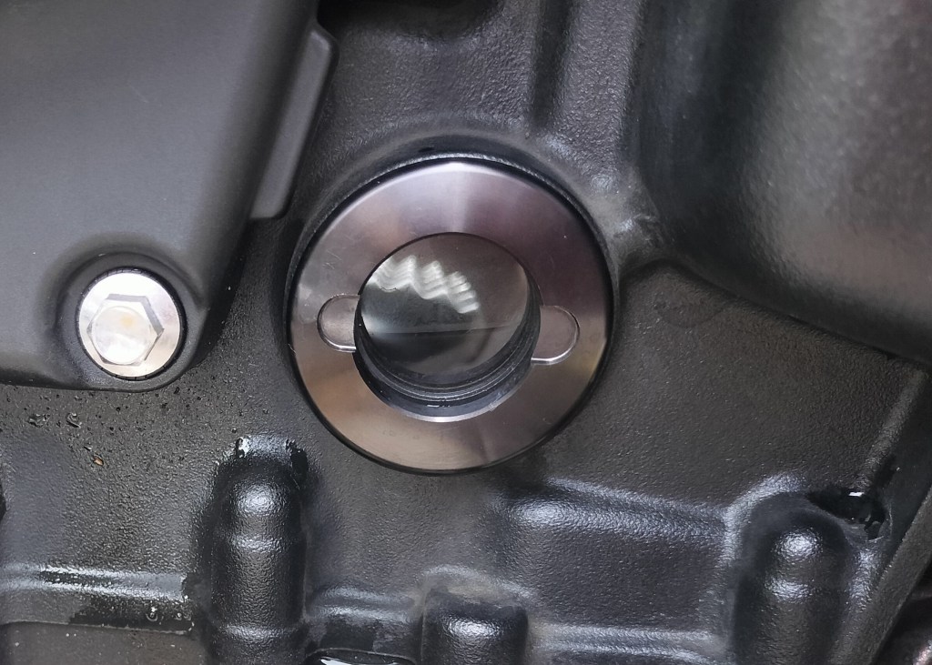 チェーンメンテナンスのときにオイルの量をチェックしてみました。場所が前下がりなので分かりにくいですが、少し減ったかな…という印象です。また半年後にチェックしたいと思います。