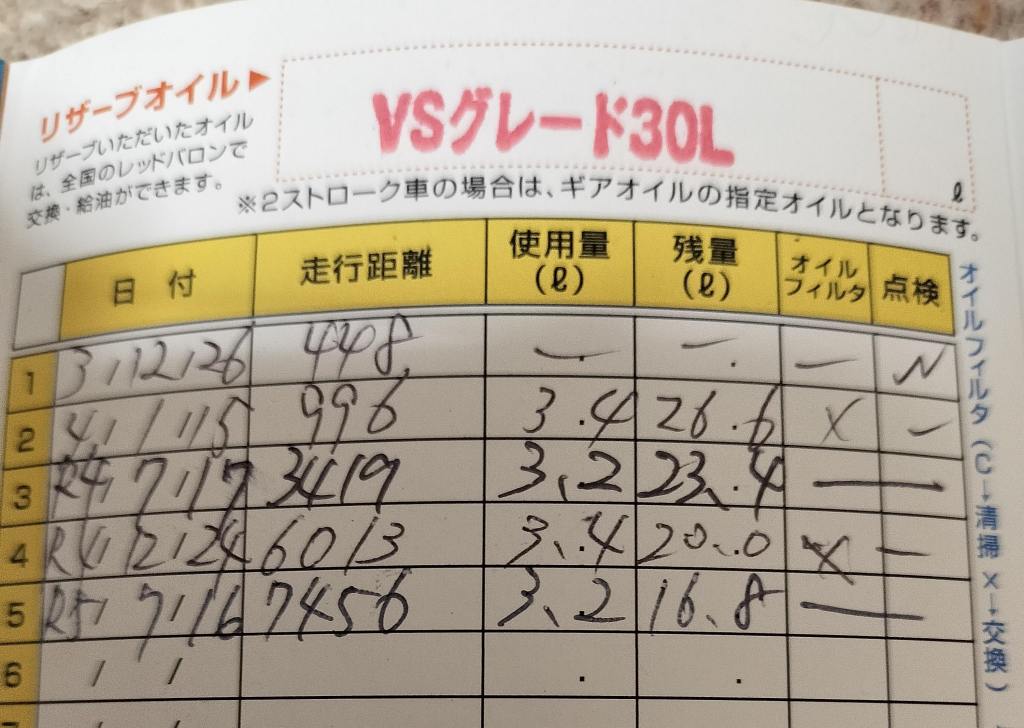 前回のオイル交換から半年が経ったので、オイル交換をすることにしました。昨年は1年で6,000㎞くらい走ることができたのですが、今年は7月時点で1,500㎞くらいしか走れていません。もっと走りたいなあ。
