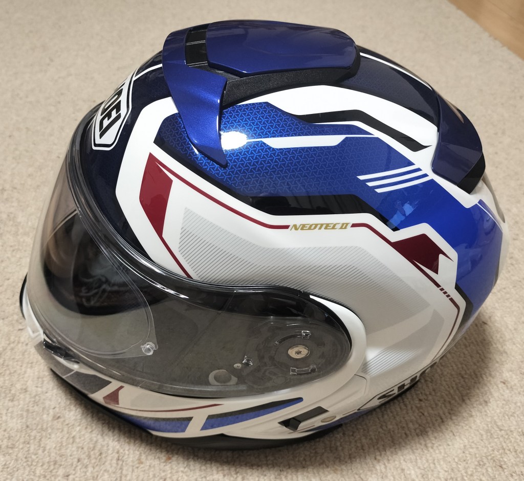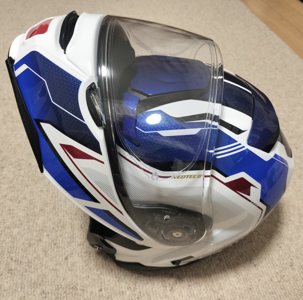 そのときに「これかっこいいなあ」と思っていたのが、NEOTECⅡのこのカラーです。「私のBlueのStreet Twinにピッタリだ!」とは思いつつ、システムヘルメットということもあり値段も立派だったので、当時は購入までには至らなかったのです。