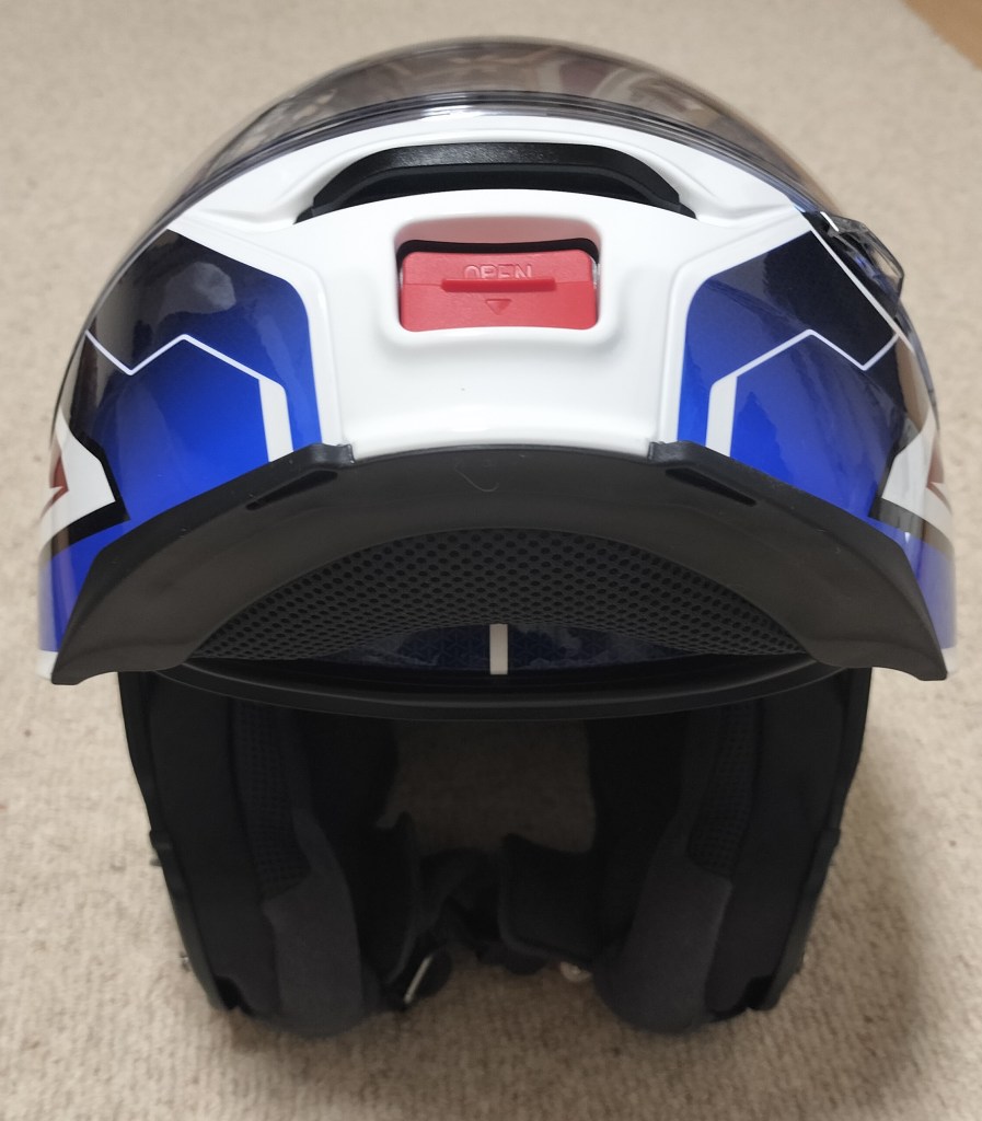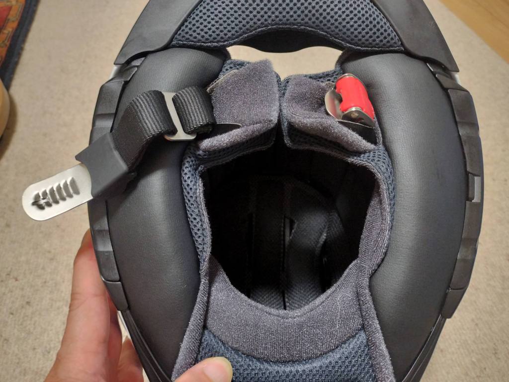 システムヘルメットですけど、重い感じはしません。顎の部分を跳ね上げることができます。使ってみた感じですが、顎の部分を跳ね上げると手元が良く見えます。「ポケットをちゃんと閉めたかな」とか「ジャケットのポケットからスマホを出したいな」というときにも、手元がよく見えるので作業がしやすいのです。使い心地も良好です。