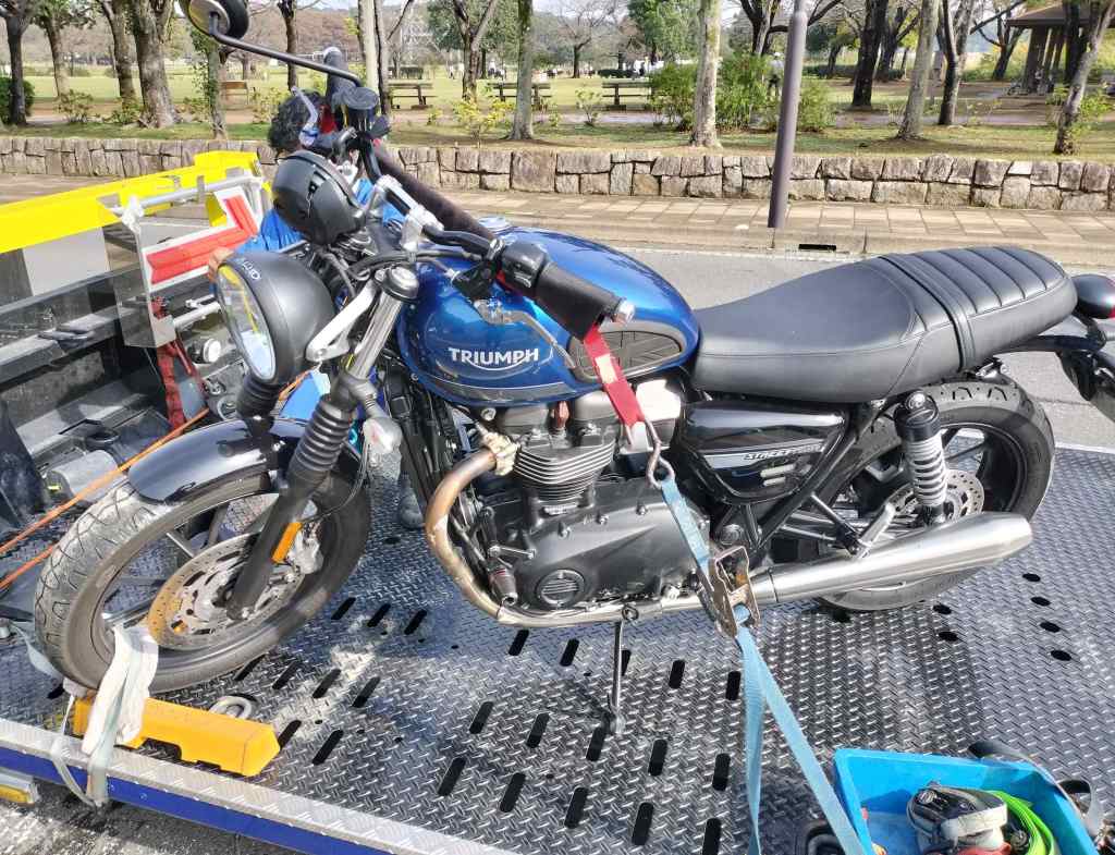 いままで、バイクに傷がつくような出来事は立ちごけ程度でした。Street Twinを購入して約2年になりますが、とうとう走行中に転んでしまいました。幸い他の人を傷つけたり構造物を壊すことがなかったのですが、体の痛み以上にバイクを傷つけてしまったことがショックです。