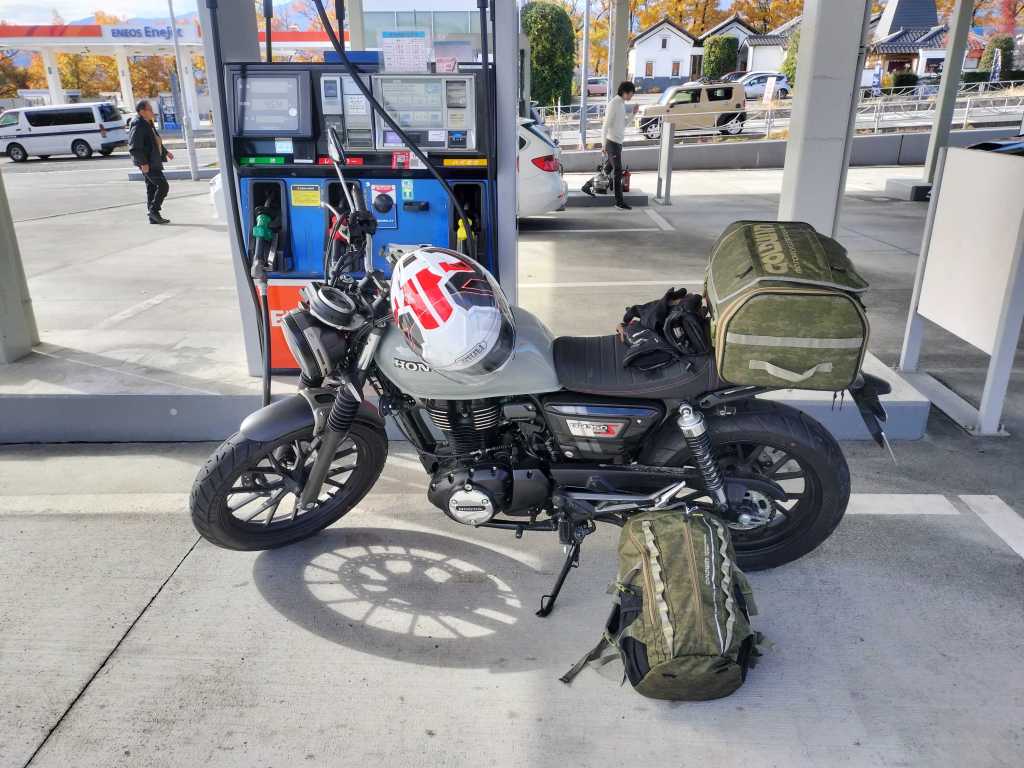 3日目は自宅へ帰るのみです。10時過ぎくらいに宿を出発し、ホンダドリーム山梨さんへ向かいました。返却前に給油です。出発時にリセットしたTrip Meterが264.2㎞で4.54ℓのレギュラーガソリンを給油しました。燃費は58.2㎞/ℓです。メーカーのWebを検索すると燃料消費率47.0km/L(60km/h定地燃費値)とあるので、今回の燃費は満タン法による誤差が大きそうですが、燃費はかなり優秀のようです。