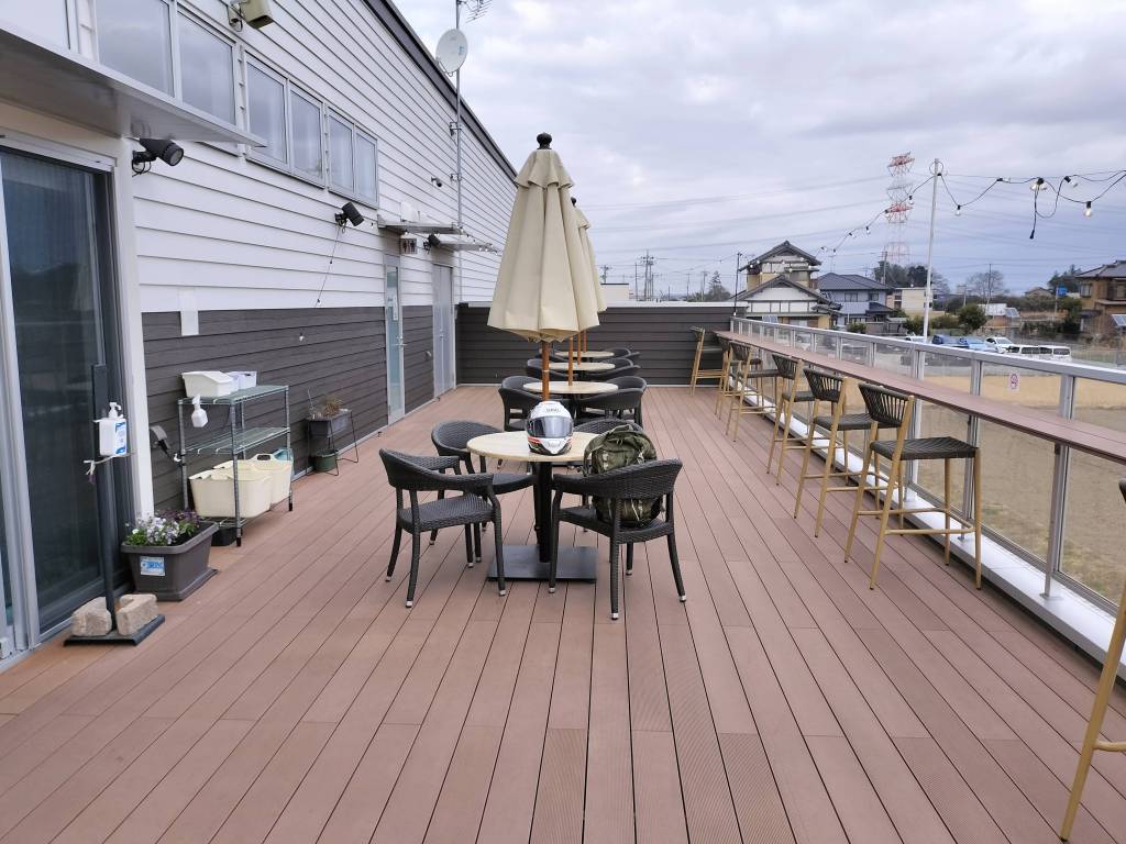 駐車場はとても広く、カフェの前にバイク用のスペースもあります。暖かくなったら、テラス席でコーヒーを頂こうと思います。