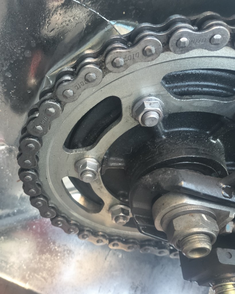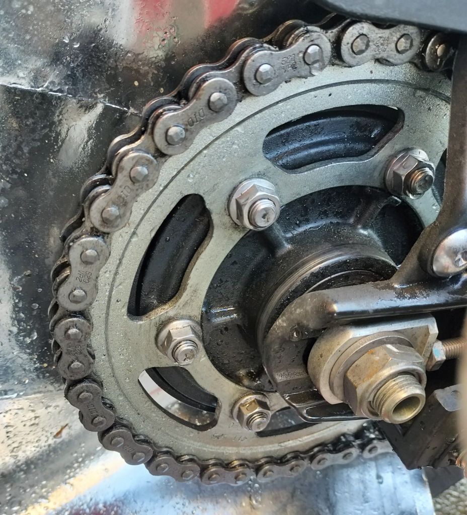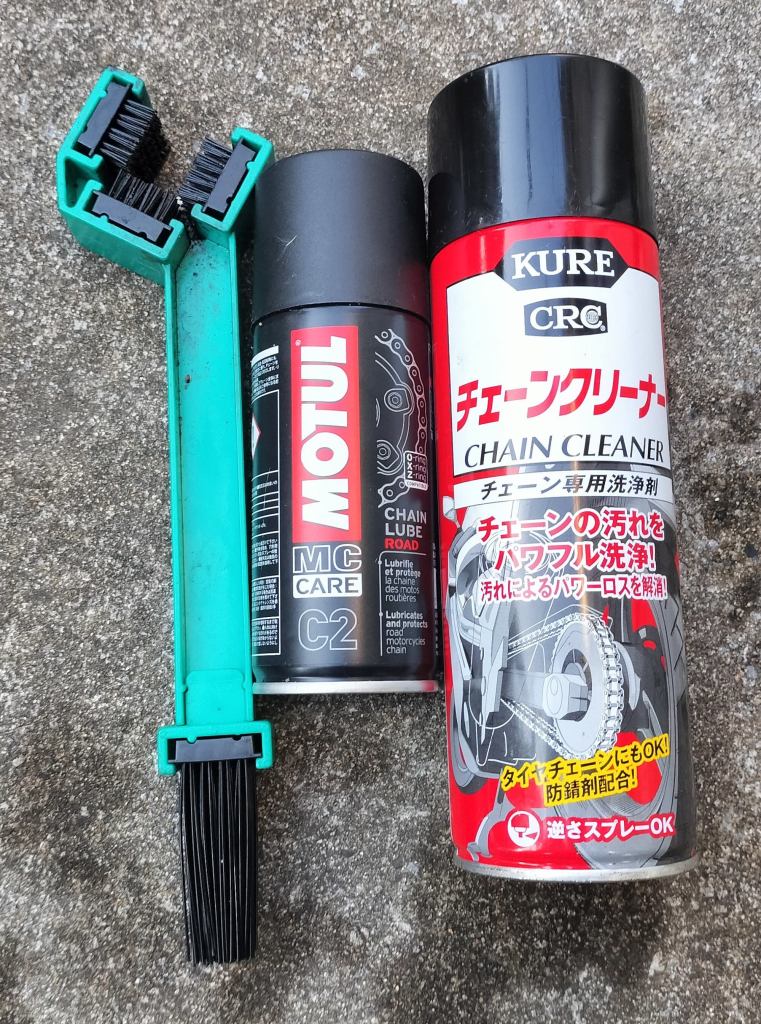 ODOMETERが9,500㎞を超えました。後輪の洗車が終わったので、チェーンメンテナンスを実施しました。前回のチェーンメンテナンスから約500㎞を走りました。相応に汚れている感じです。雨に濡れた路面を走ることもあったのですが、錆は出ていないようです。