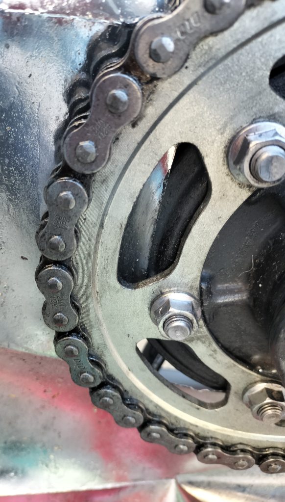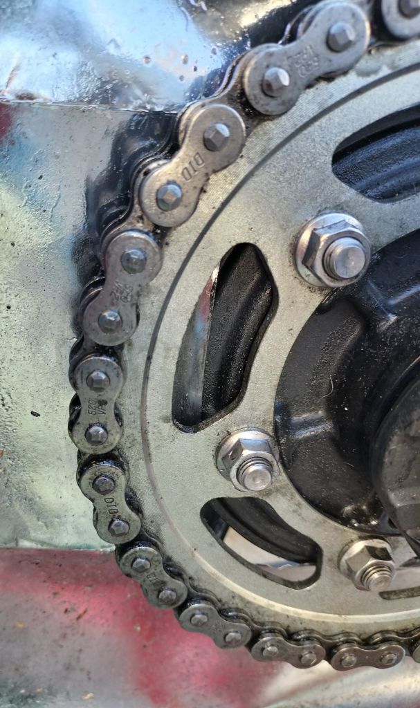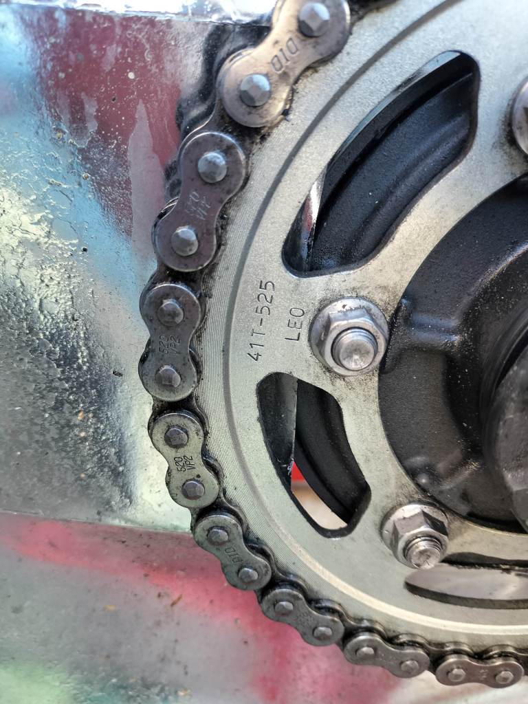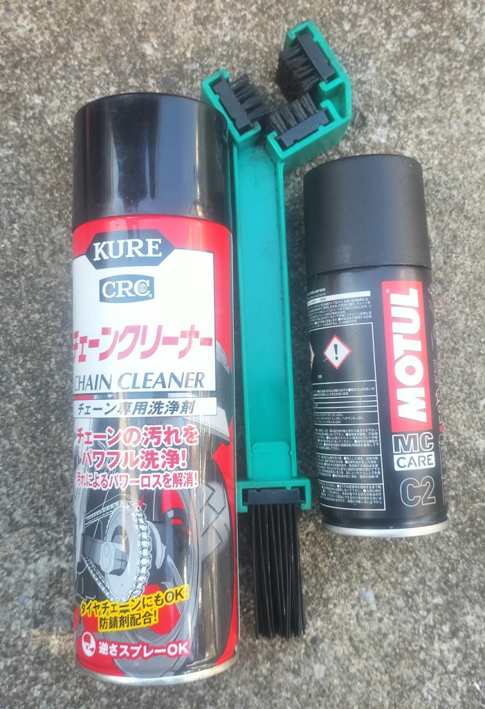 5分経ったので、ウエスで余分なルブを拭き取り、チェーンメンテナンス完了です。ピカピカというわけではないですが、必要最低限のメンテナンスはできたと思います。