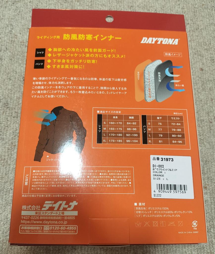 冬のツーリング用に防寒防風インナージャケットを買いました!