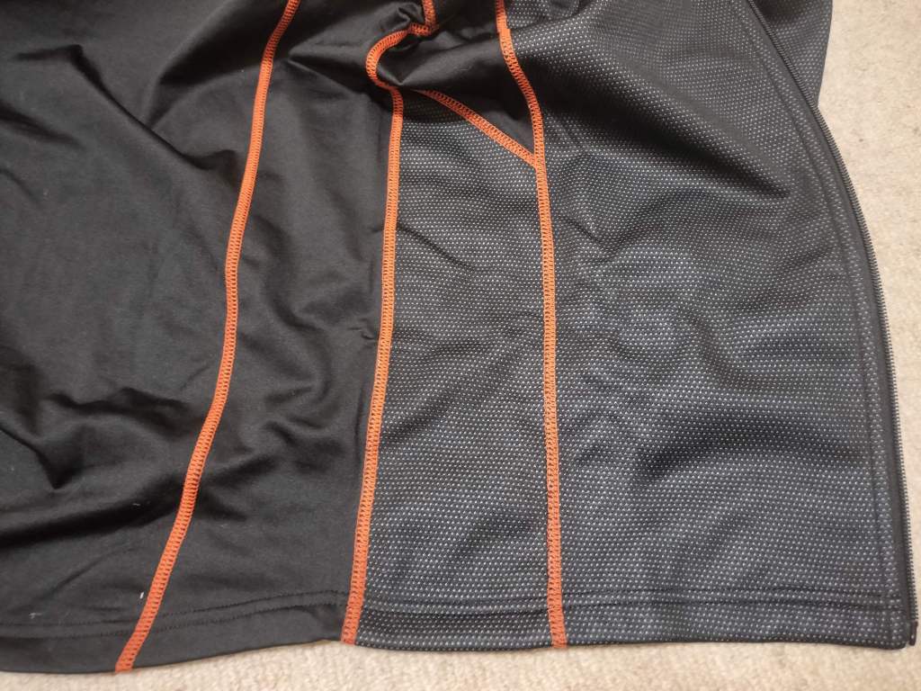 上の画像が購入したインナージャケットです。パンツと同じように前面は防風性をもたせ、背中側は通気性を持たせています。朝、気温3℃前後の環境で一般道と高速道路を走りました。組み合わせたライディングウェアはワークマンの緑色のものです。Street Twinはネイキッドなので、風を直接体に受けながら走るのですが、高速道路を走っても風が入ってくる感じはなく、とても快適でした。この日は全部で200㎞以上走行したのですが、寒いと感じることはなく、自宅まで体力を保ちながら安全に走行することができました。