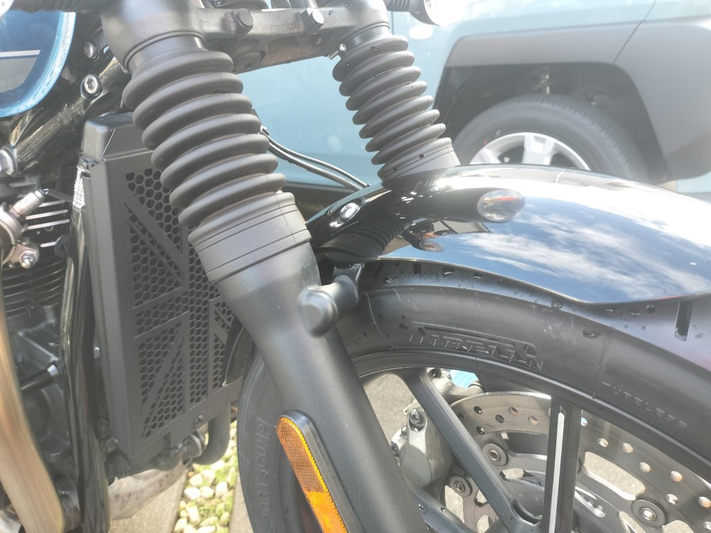 洗車が終わり、Street Twinがキレイになりました。キレイになると気持ちいいです。全体をキレイにしたので、次はチェーンメンテナンスに移ります。チェーンメンテナンスは次回レポートします。