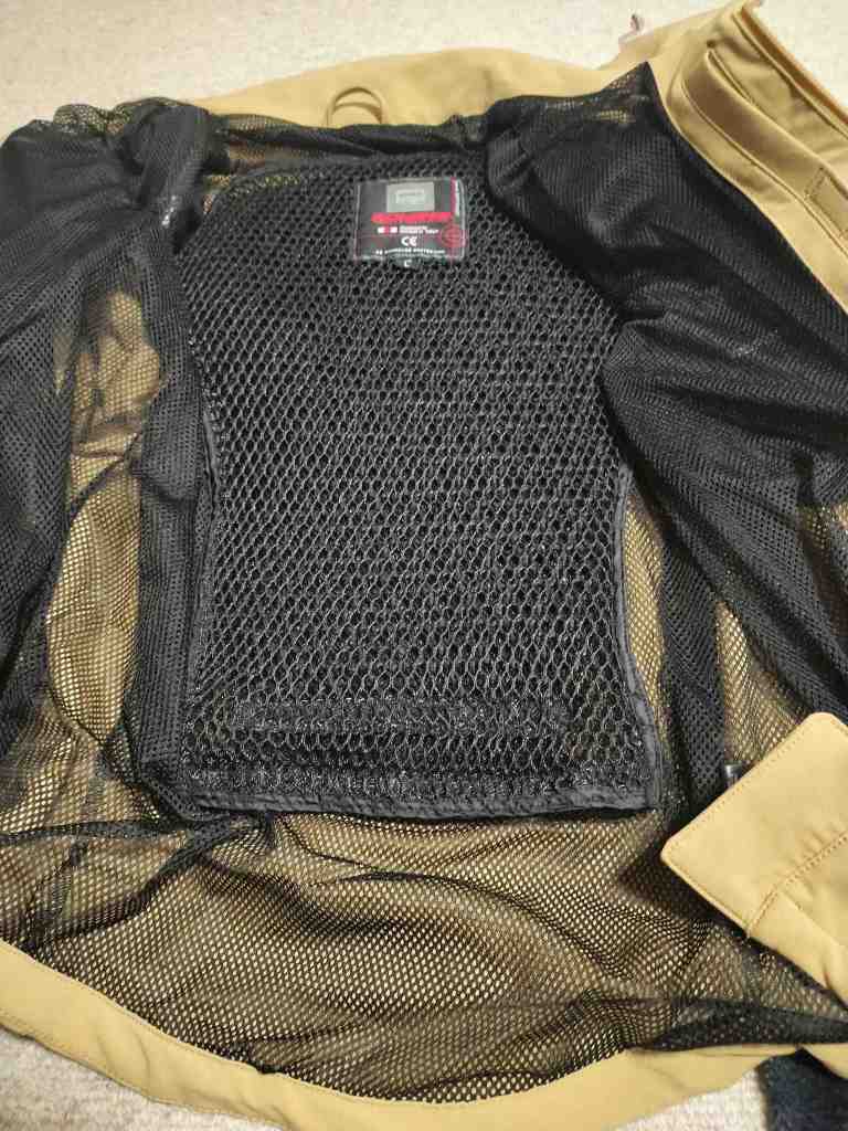 値段のわりに…といっては失礼ですが、しっかりとしたプロテクターが入っています。背中はOptionに交換しようと思いますが、胸、肩、肘にしっかりしたプロテクターが入っています。ジャケットの生地もしっかりしていると思います。