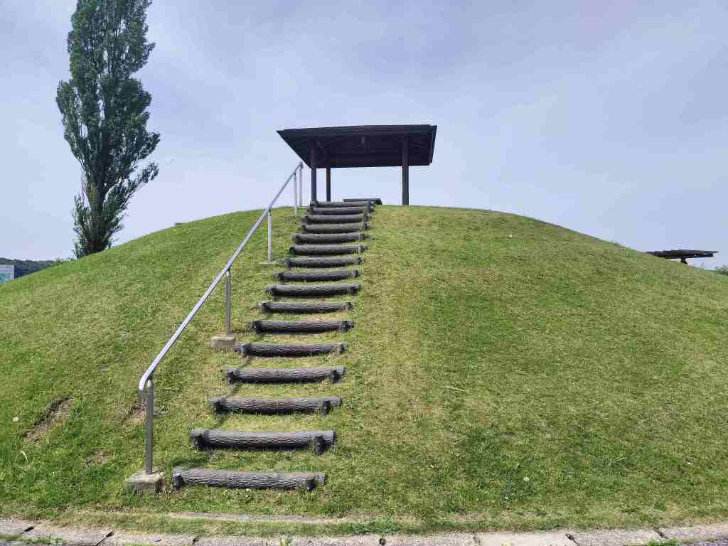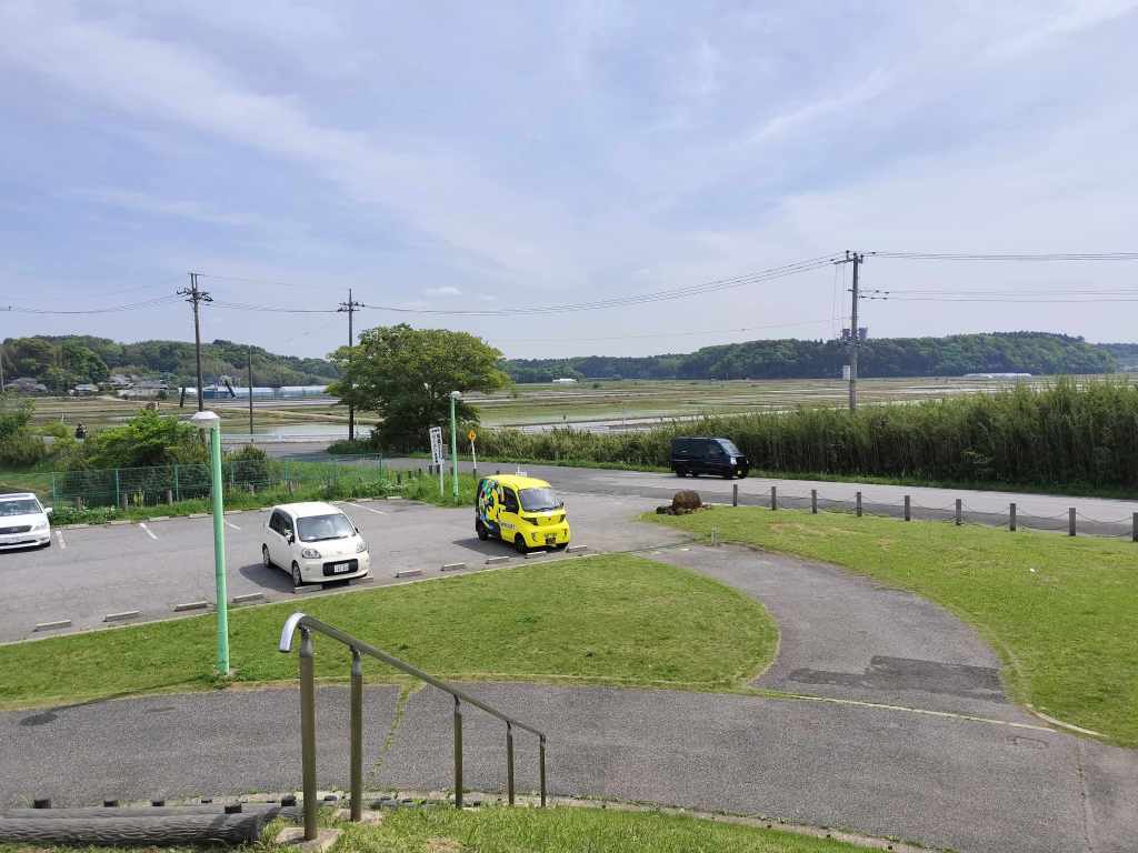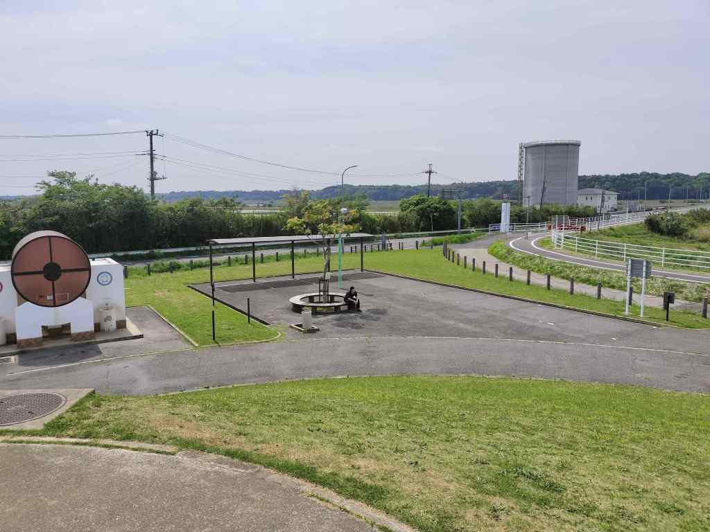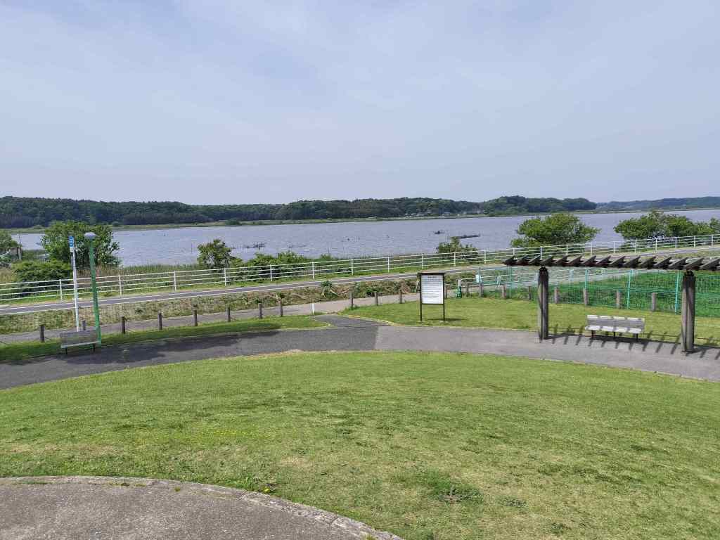 公園の中央には小高いマウンドがあり、てっぺんには屋根付きのベンチがあります。天気の良い日だったので、気持ちよくゆっくりできました。高いところなので、周囲を一望することができます。印旛沼も見ることができます。バイク専用の駐車スペースはありませんが、混雑することはなさそうなので、ツーリングで一休みする場所としていい感じです。