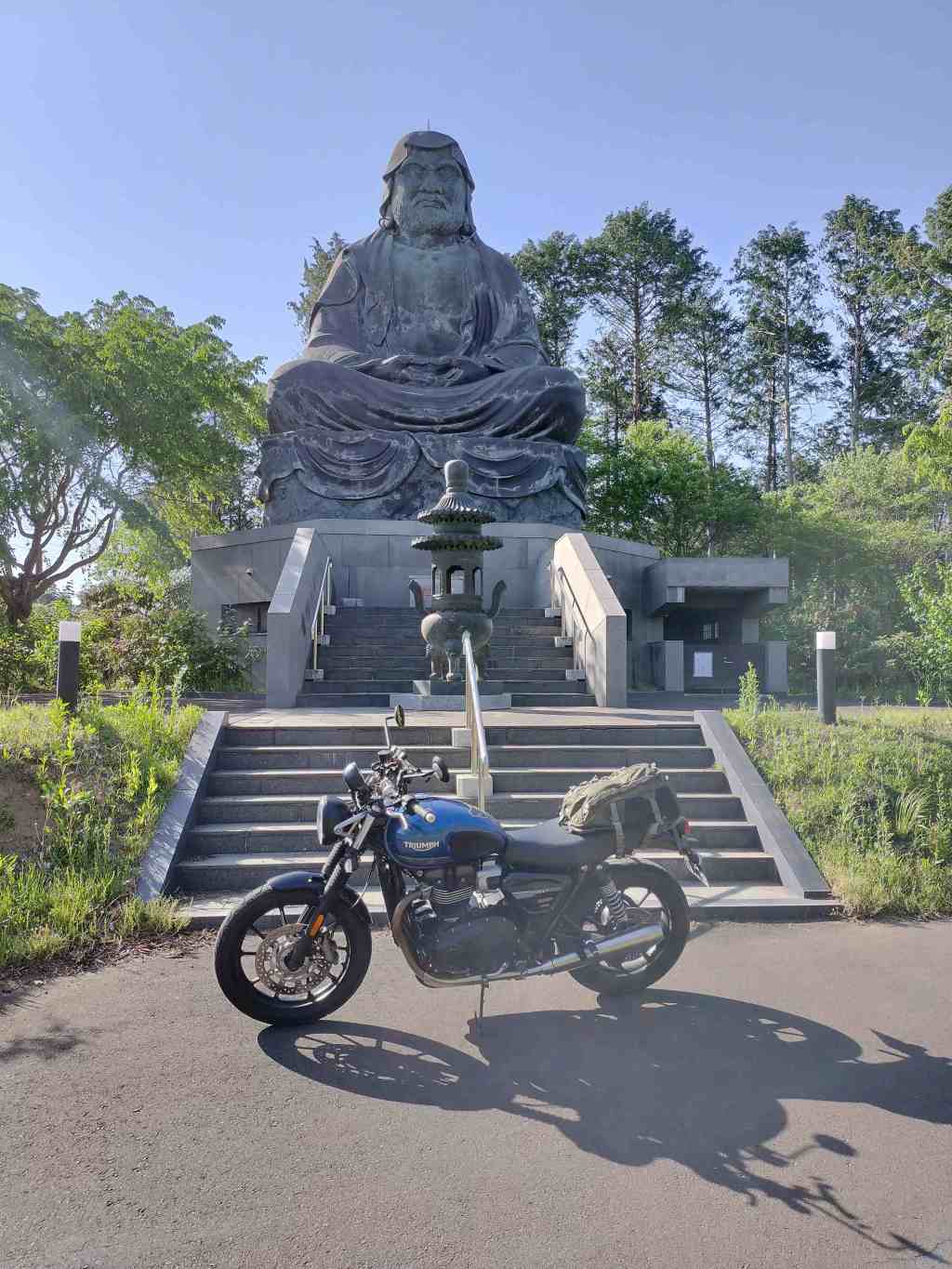 どこで知ったのかは忘れてしまいましたが、茨城県にも大仏様がいらっしゃるとのことなので、Street Twin と行ってみることにしました。ちょうどビーフラインの笠間市側の入口付近にあります。神奈川県鎌倉市にある大仏様よりは小さいかもしれませんが、大きく立派な大仏様です。