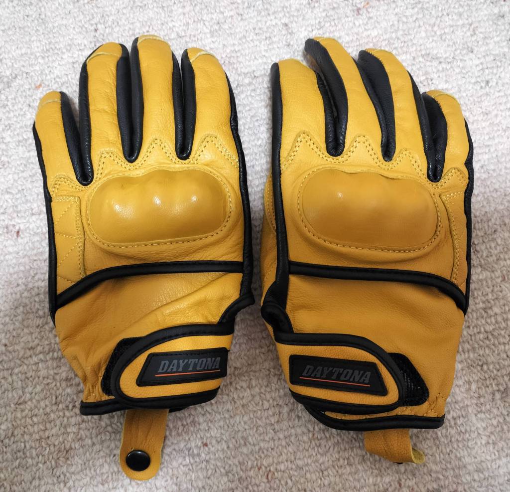 春や秋は薄めの皮のグローブを愛用してきました。いままでのものがだいぶ傷んでしまったので、デイトナ製のゴートスキングローブを買いました。いくつか試着しながら選んだのですが、フィットした製品の中で、この黄色い色が気に入りました。買ってから気づいたのですが、指先にはなにも加工されていないので、指先でスマホの操作ができません。シールなどが販売されており、それを指先に貼るとスマホが操作できるようなので、ちょっと探してみようと思います。
