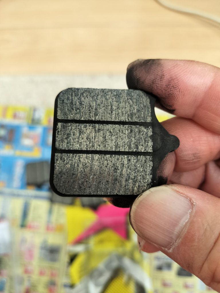 取り外した純正パッドをもらって帰りました。パッドはまだ少し大丈夫そうです。メカニックの方は「早い人はこのくらいで交換しますよ。」「あまり長期間交換しないとパッドがはがれてきたりするので、定期的に交換する人もいます」と言っていました。予防整備は早い方がよいし、新しいパッドも試したかったので満足です。10%OFFですしね。