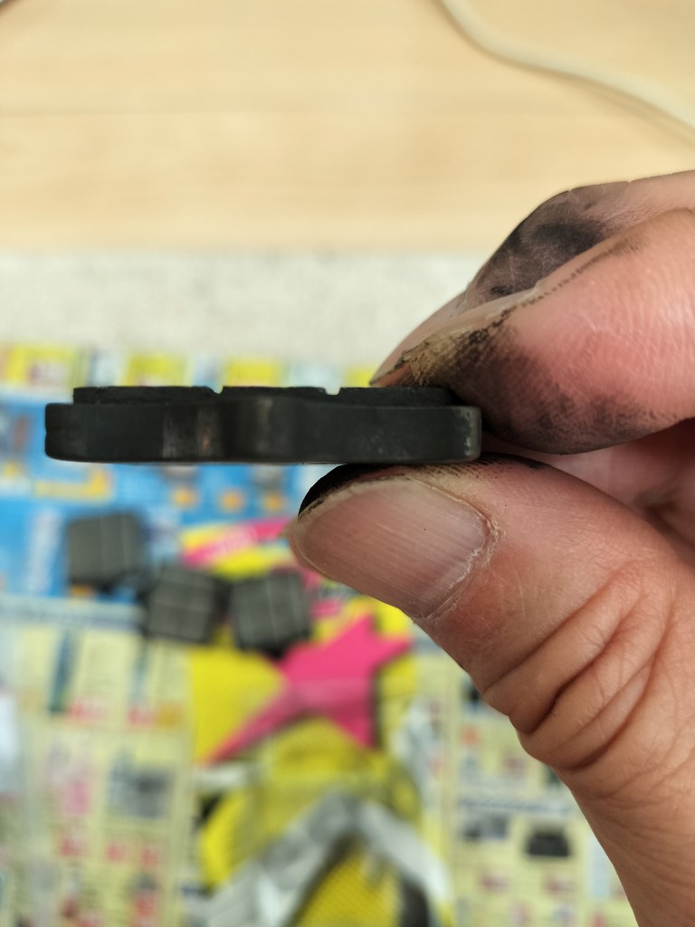 交換後は上の画像のようになりました。純正は黒一色だったので分かりにくかったですが、Vesrahは色が分かれているので、分かりやすいです。これなら私にも目視できます。