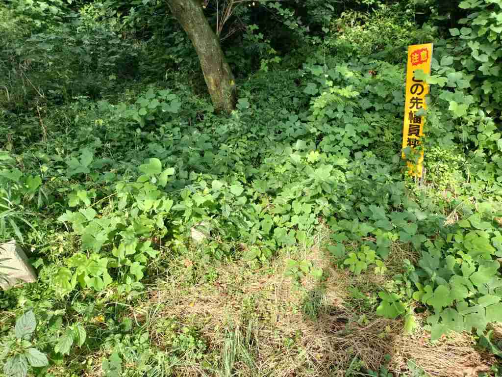 Google Mapで現地の画像を確認すると、恐らくここが足跡らしいのですが、特に案内看板などはないようなので、自信はありません。たぶんここです。足跡として沈んだ感じの場所は、雑草が深いせいか分かりにくいです。冬に行ったら、もう少し分かりやすいかもしれません。