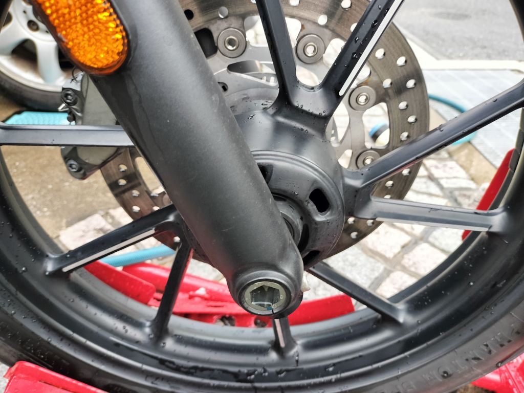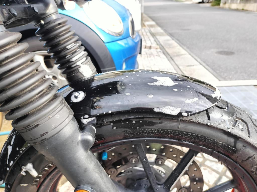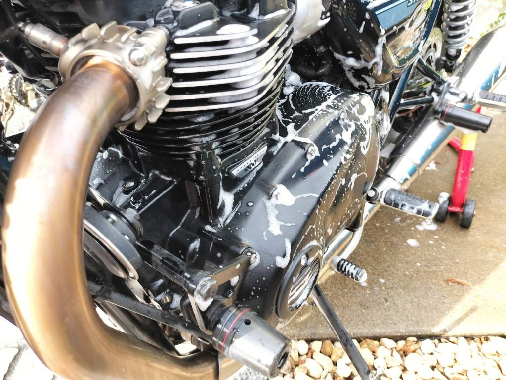 シャンプーやクリームクレンザーを流水でしっかり落とし、水分を拭き取って完了です。すっきりしました。エキパイがだんだん焼けてきているようです。自分としては好きな感じなのですが、磨いてみるのもいいのかな…と思う今日のこの頃です。