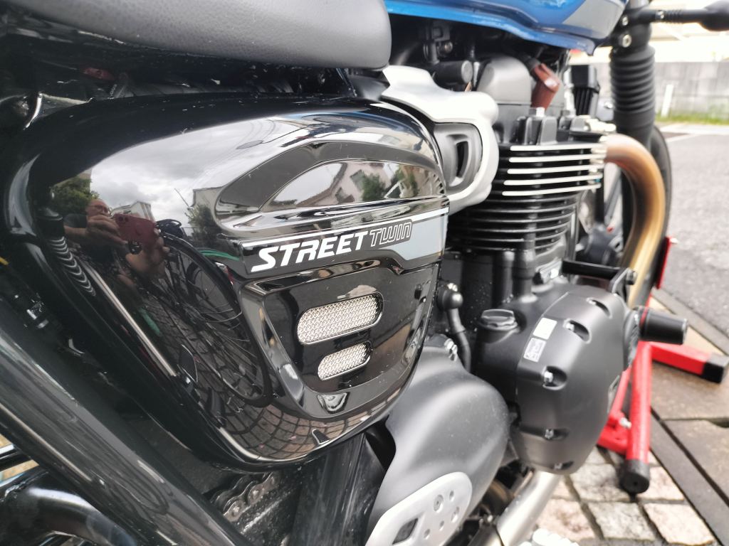 ODOMETERが13,000㎞を超えました。チェーンメンテナンスのタイミングになったので、その前にStreet Twin を洗車することにしました。雨上がりで濡れた路面を走ったりしたので、Street Twin はそれなりにドロドロです。