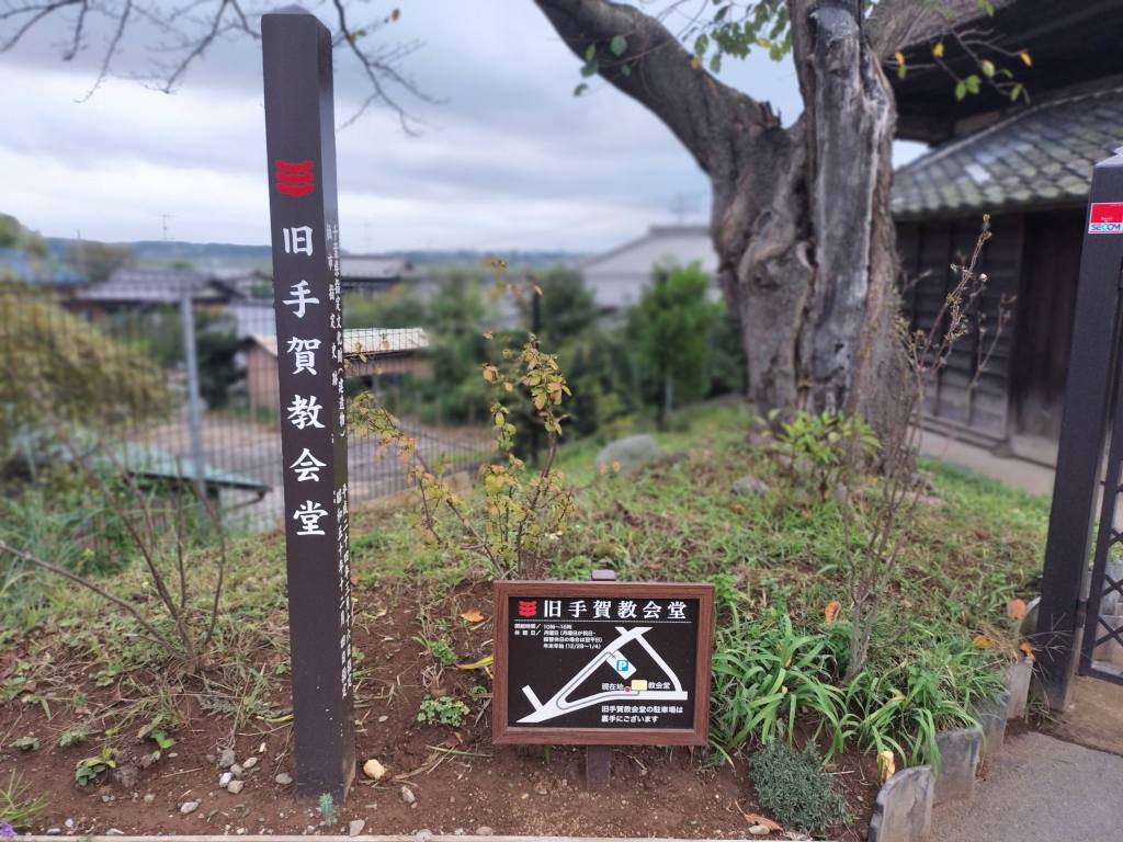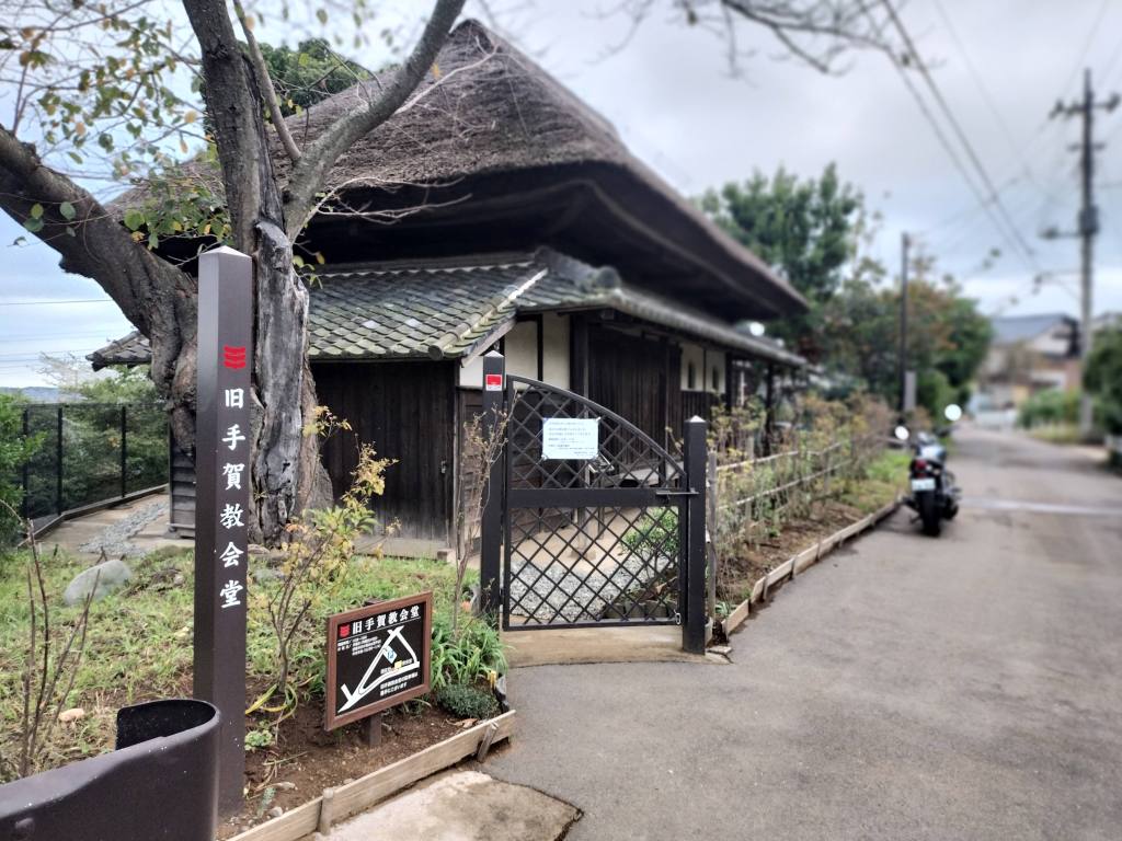 教会なので十字架のある建物を期待していたのですが、茅葺屋根なのですね。Webで検索すると「旧手賀教会堂は、明治14年に茅葺屋根の民家を教会堂に転用したもので、現存する日本で唯一の転用教会堂です。また、首都圏で現存する教会堂としては最古のものです。」とあります。いま壱萬円札の顔になった渋沢栄一氏が生きた時代からあるのですねえ。すごい。