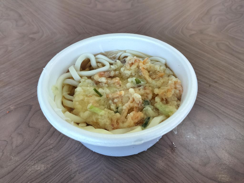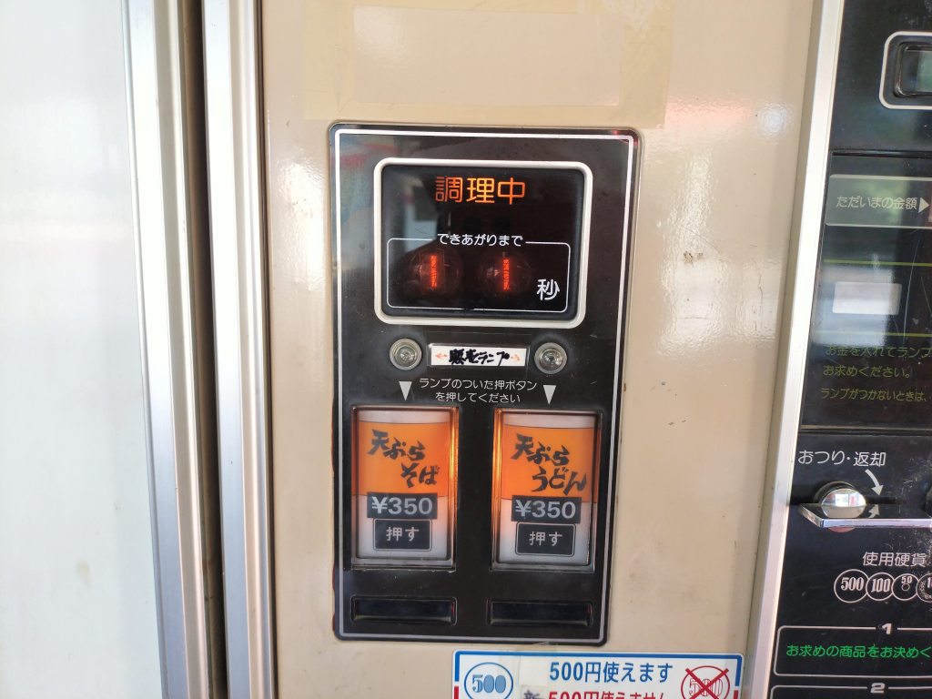 自販機に350円を入れ、うどんのボタンを押します。約30秒で暖かいうどんが出てきました。待ちに待ったうどんです。感動です。思ったよりコシがありました。でも、関東ではやっぱり蕎麦の方がいいかも…です。あくまで個人的な好みですが。