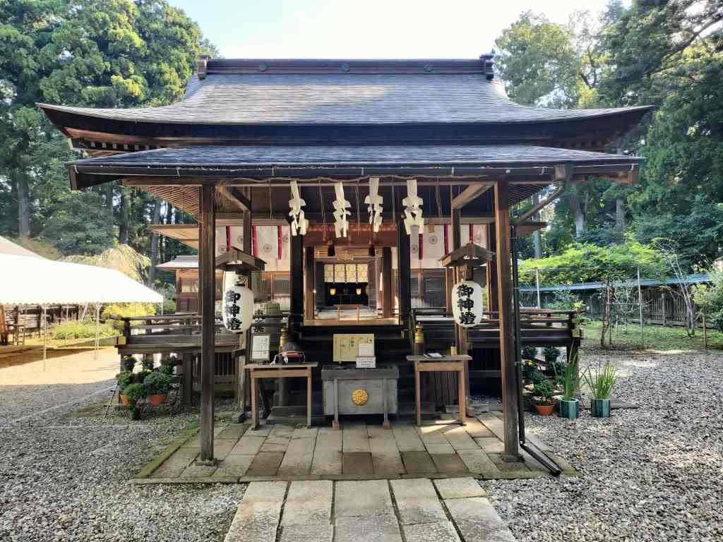 バイクを駐車し境内に入り100mほど歩くと、左側に本殿があります。まだ時間が早かったのか、水で手を清めることはできませんでしたが、本殿でツーリングの安全などを祈願させて頂きました。