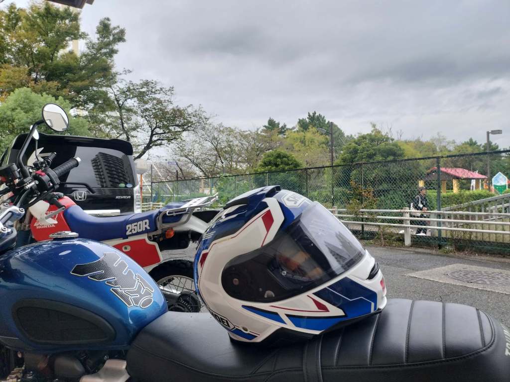 東京都内の大井中央公園に行く用事があったので、Street Twin で都内に向かいました。集合時間まで早かったので、昼ご飯を食べることにしました。向かったのは、春に行ったスワンベーカリーのあるショッピングモールです。正規のバイク置き場にStreet Twin は入らないので、邪魔にならないところにStreet Twin を駐車しました。他にもバイクのお客さんがいたようです。