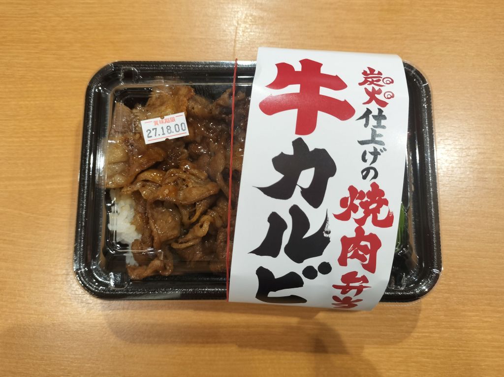 どれにしようか弁当を選ぼうとしたとき、焼きたてのカルビ弁当が来たので即決しました。690円だったかな。開けてみると肉がいっぱいです。とても美味しかったので、大満足です。週末に大井中央公園近くで昼ご飯を食べる場所は少ないので、また来ようと思います。