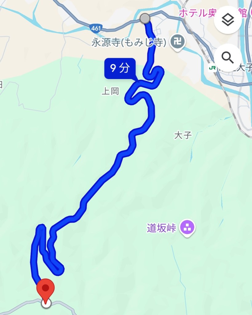 途中で永源寺に寄り、そのあとは再び左の画像のルートでアップルラインを下りました。その後は大子美和線に入り、タバッコ峠を通過しました。やはり適度にくねくねしていて、とても気持ちいい道でした。高部宿まで来ると終わりのようでした。気持ちのいいルートだったので、また来たいと思います。