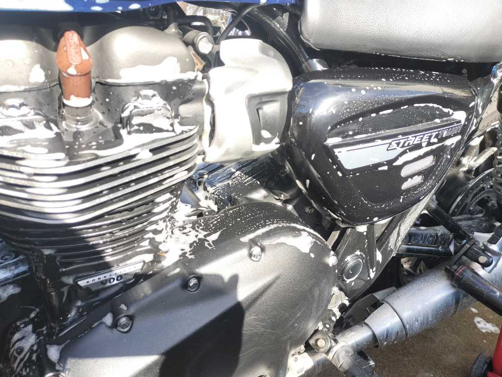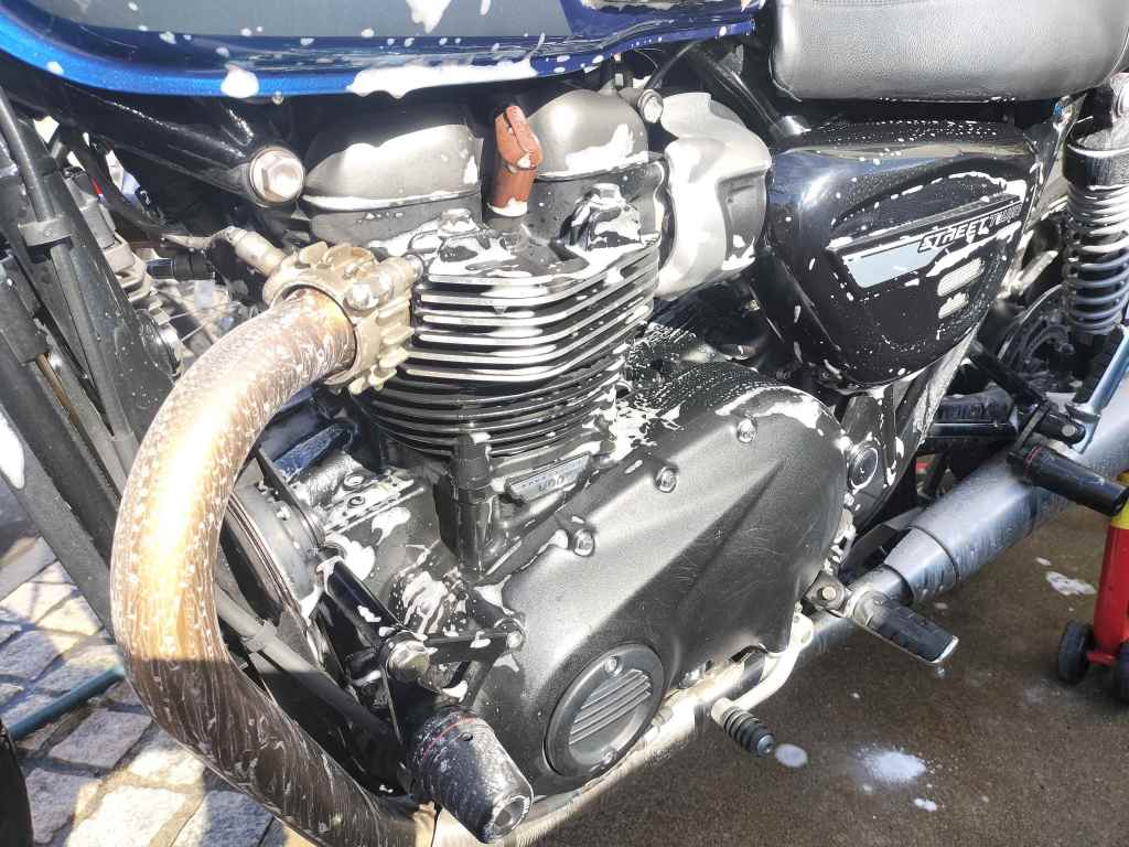 こんにちは、Gentle Street Riderです。十王ダムなどのツーリングを楽しみ、それなりに走行したので、Street Twin を洗車することにしました。先のツーリングでは天気こそよかったものの、山の日陰には濡れた路面があったりしたので、それなりに汚れました。