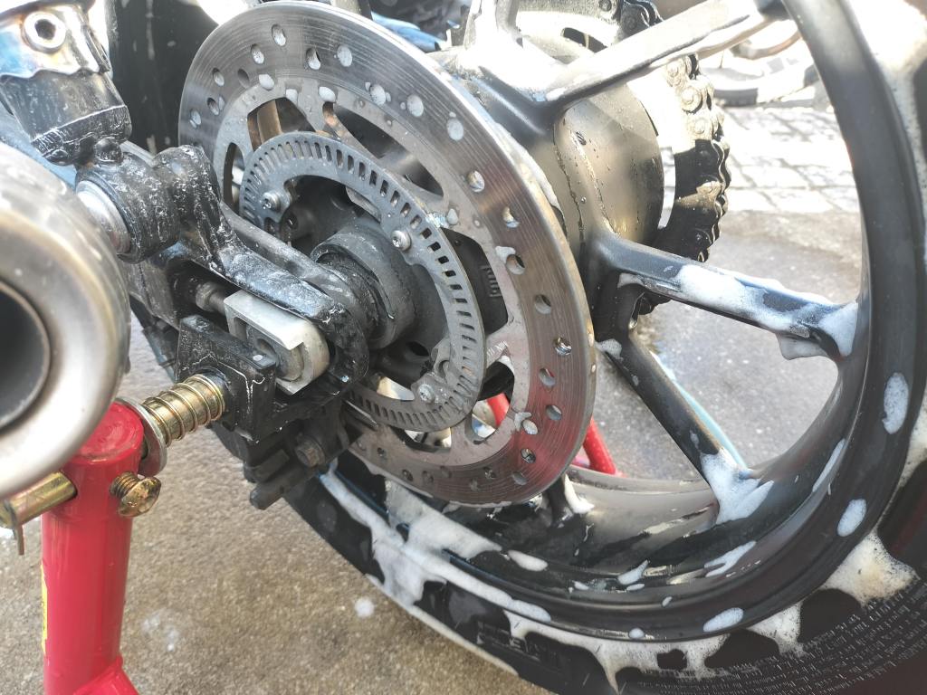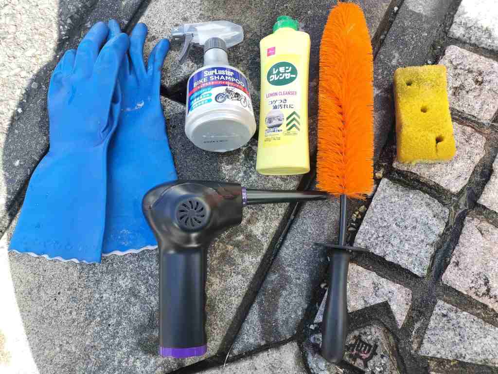 バイク用シャンプーを車体に使い、100円ショップのクリームクレンザーをエキパイやマフラーに使いました。シャンプーは前回と同じシュアラスターです。使いやすく、泡立ちも良かったです。