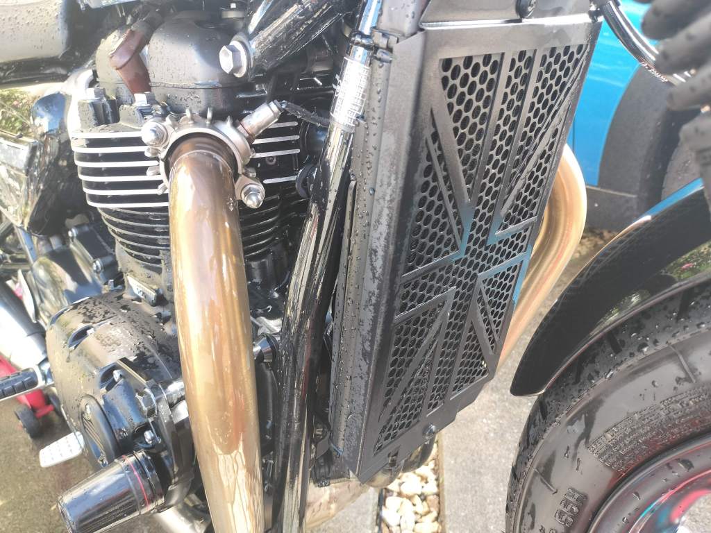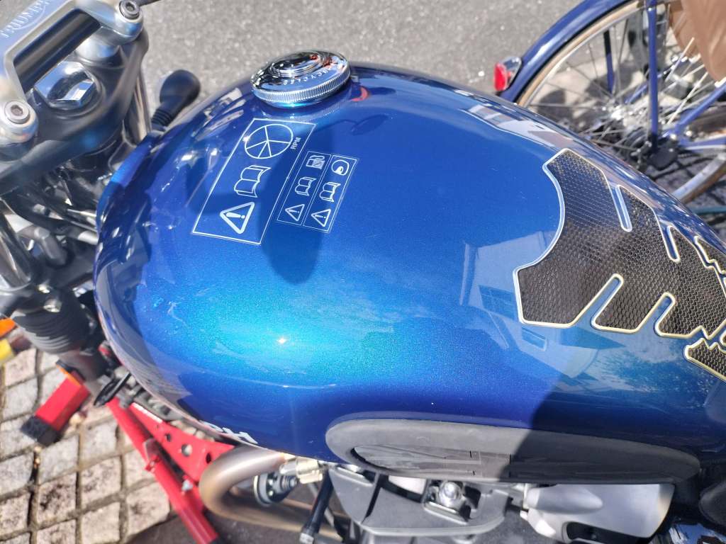 拭き取ったり、ブロワーで吹き飛ばしたりして、水分を除きます。これで洗車が終了です。後輪の汚れが取り切れなかった感じがあるものの、Street Twin がキレイになったので、とても気持ちいいです。
