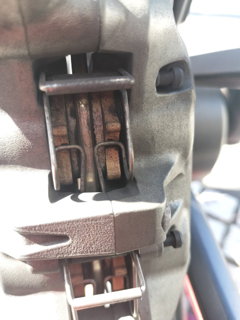 ブレーキパッドはODOMETERが12,000㎞くらいの時に替えたので、まだ2,000㎞くらいの走行です。フロントのパッドはたっぷり残っています。