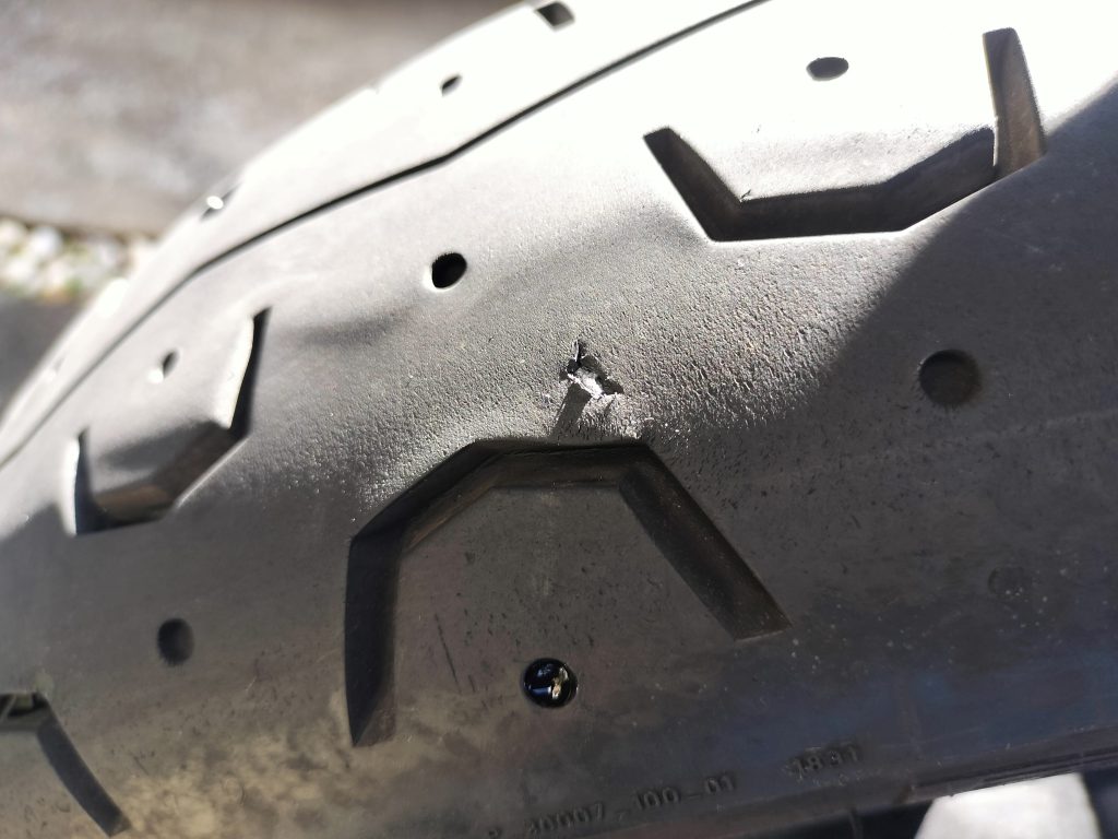 何気なくリヤタイヤを見ていたら、なんだかボコボコしています。触ってみるとやはりボコボコしています。少しタイヤを回転してみると、タイヤに傷があります。先日タイヤ空気圧を計測したとき、著しく低下していたのですが、これが原因でしょうか。でも、その後に十王ダムへ行ったりして約350㎞を1日で走ったりしても、あまり気が付きませんでした。私が鈍感なのか…。