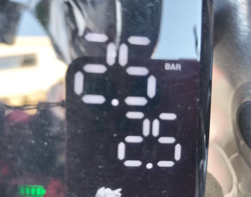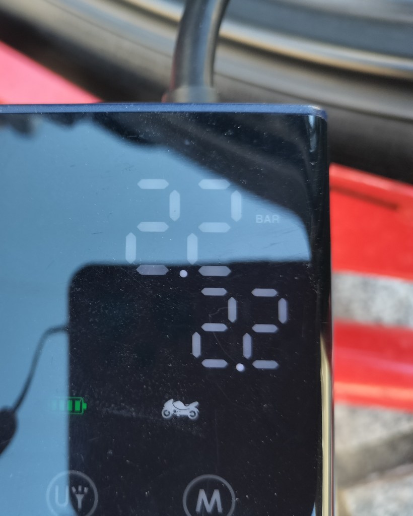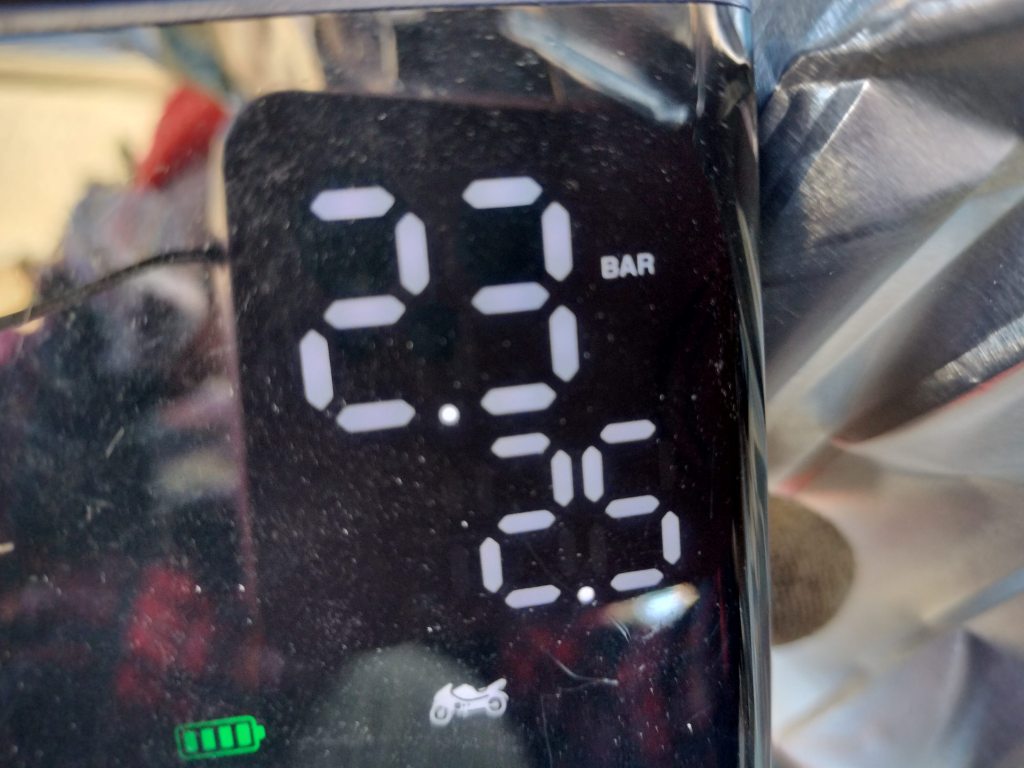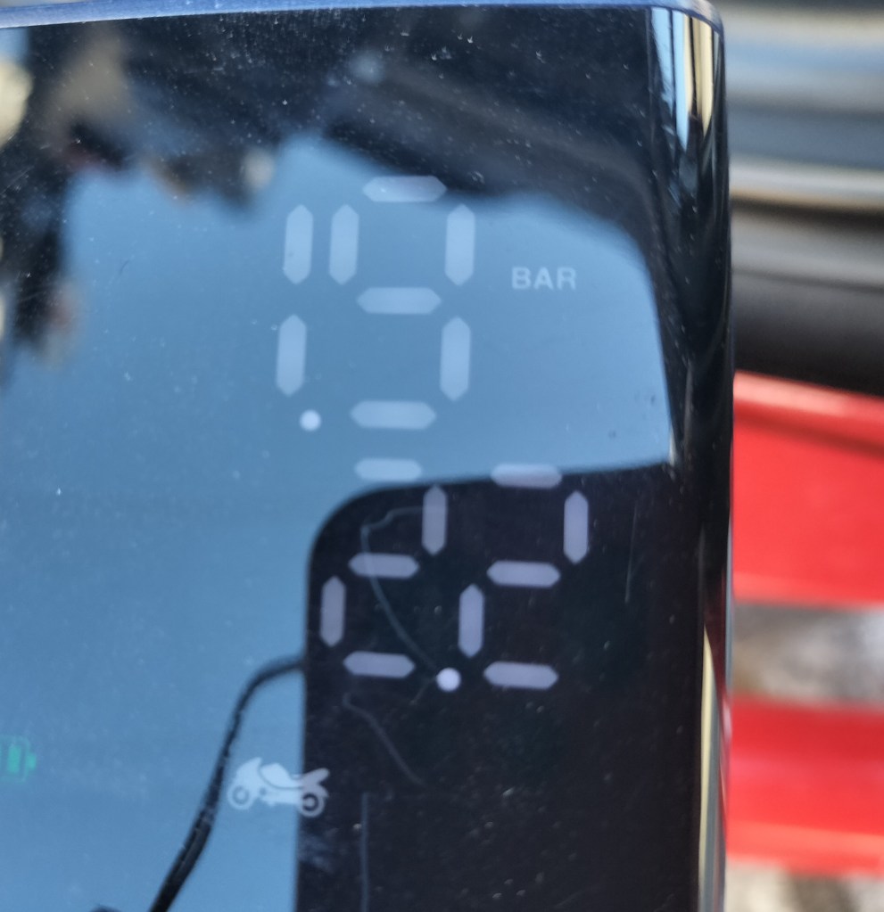 前回の測定から約1ヵ月経過したので、空気圧をチェックしました。前輪は1.9Barに減っていたので、2.2Barまで充填しました。いつも通り空気圧が低下します。